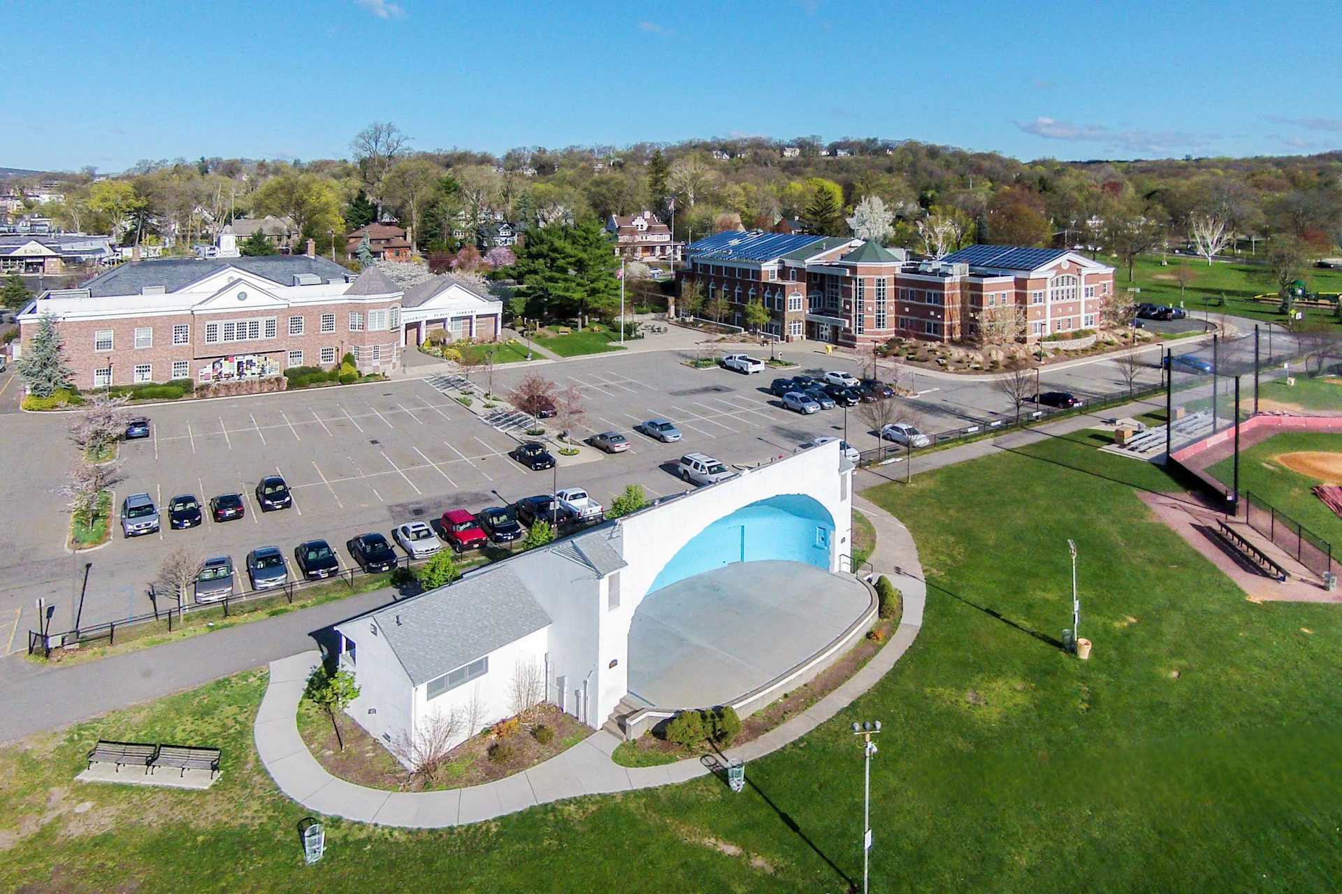 East Side: Veterans Field, Bandshell, Ridgewood Public Library, Town Hall
