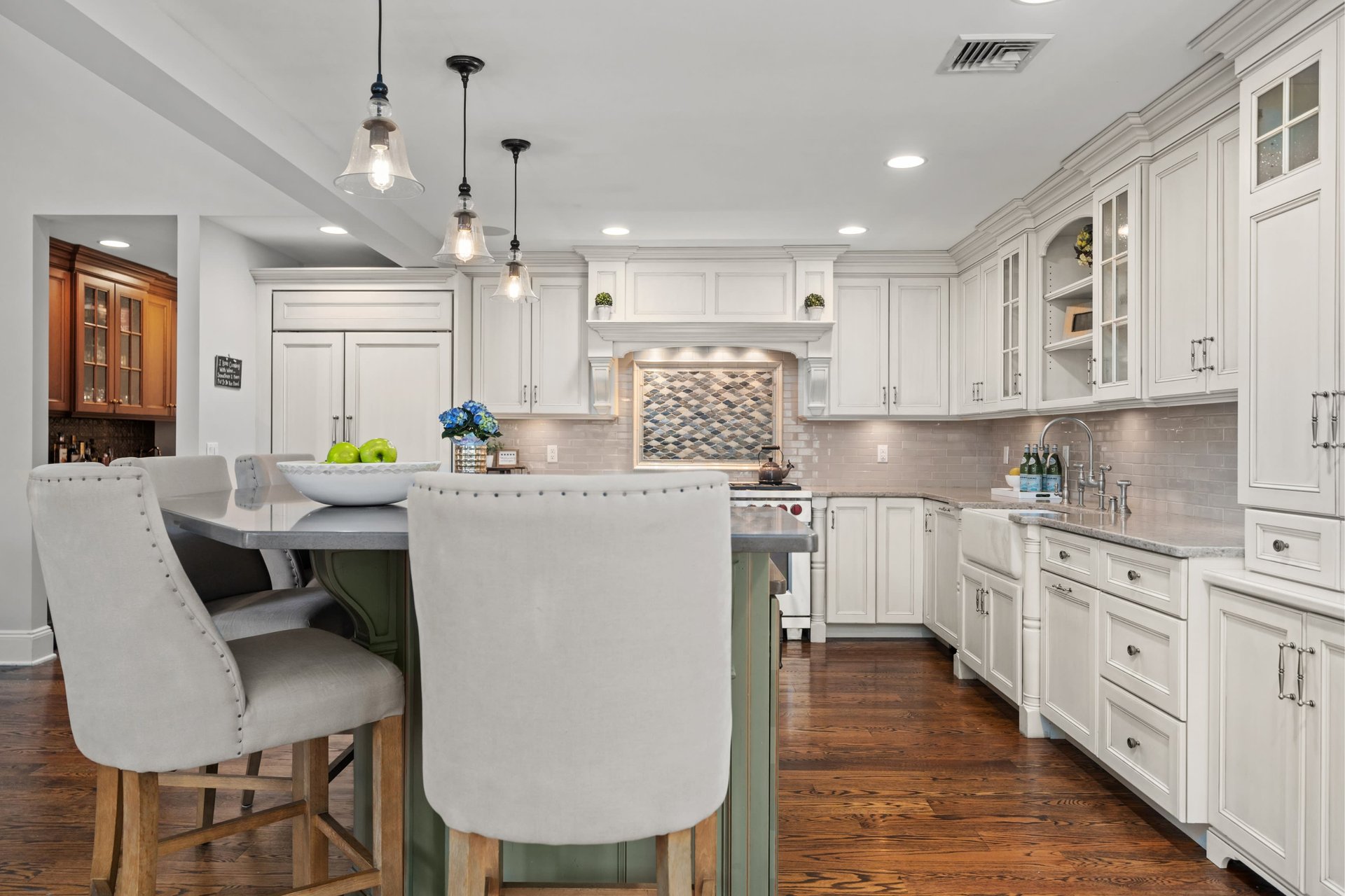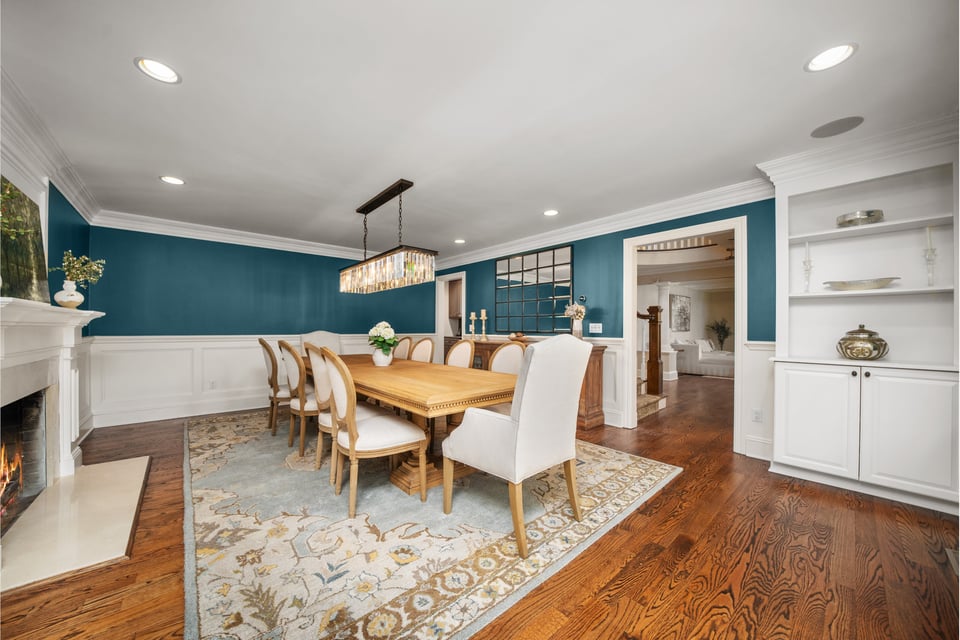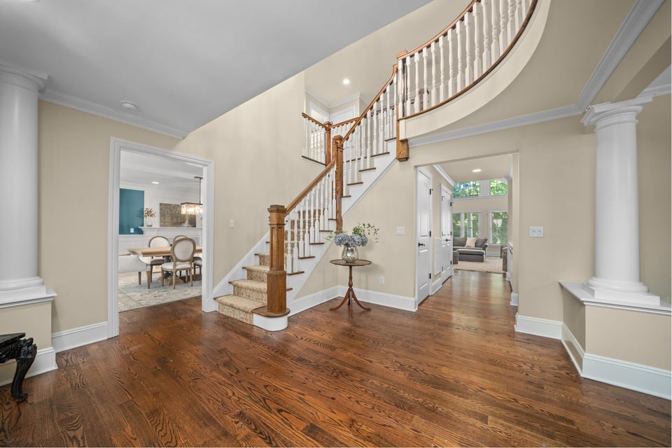 Pristine Center Hall Colonial custom-built in 2012 on nearly an acre of picturesque grounds. This exceptional 5 bedroom, 4.5 bath offers 6,400 SF of unsurpassed quality, style and curb appeal. Spectacular flow throughout the light & bright 1st level with hardwood floors, volume ceilings, and an open layout between a family room & modern eat-in kitchen w/ stainless steel appliances & sizable center island. Layout starts with an entry foyer flanked by a living room and formal dining room with flow via butler pantry into kitchen overlooking family room w/ fireplace, 30-ft ceiling & doors to large blue stone patio perfect for entertaining with a wood burning fireplace & grill. Home office/bedroom & full bath, and mudroom with access to 3-car garage wrap up the 1st floor. All 4 bedrooms on the 2nd level have 10-ft ceilings, including primary suite w/ 3 walk-in closets and spa-like bath. Large finished basement with gym & step-down to a 9-ft ceiling rec room. Simply perfect!