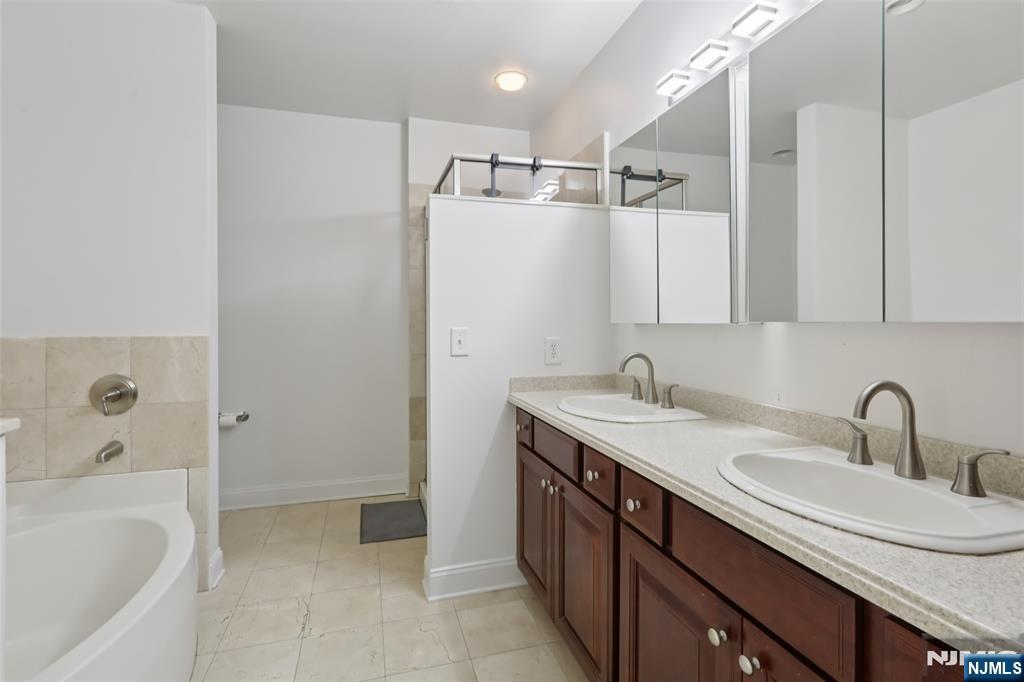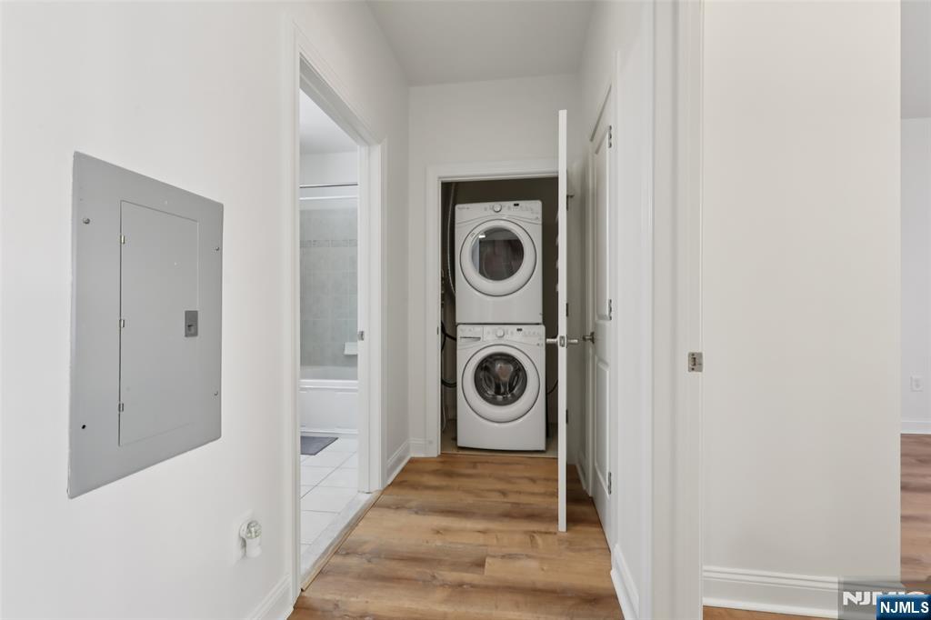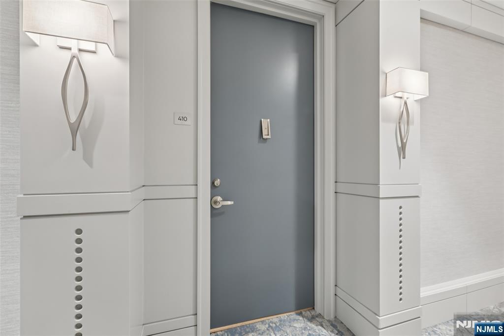Luxury 2-bedroom, 2-bathroom condo in Port Imperial's upscale Grandview II, offering an unparalleled living experience along the Hudson Waterfront. Spanning 1,273 square feet, this bright, south-facing home boasts wide-plank hardwood floors, 9-foot ceilings, and a private balcony with views of the Hudson River and NYC skyline. The open-concept layout features tall windows that flood the space with natural light, seamlessly connecting the kitchen with granite countertops and stainless-steel appliances, dining area, and living room. The primary suite offers a walk-in closet and a beautiful spa-like ensuite with a double vanity, separate shower, and Jacuzzi. Complete with a versatile second bedroom, in-unit laundry, and an indoor garage parking spot. Grandview II offers many amenities & conveniences - newly renovated hallways & ongoing upgrades to shared spaces, 24/7 concierge, indoor parking spot, pool, gym, outdoor patio. A hot spot for commuters with easy access to NYC via bus, ferry & Light Rail!