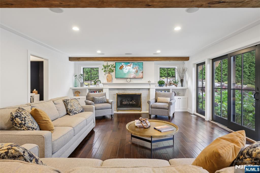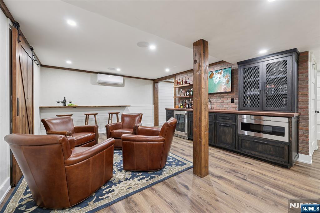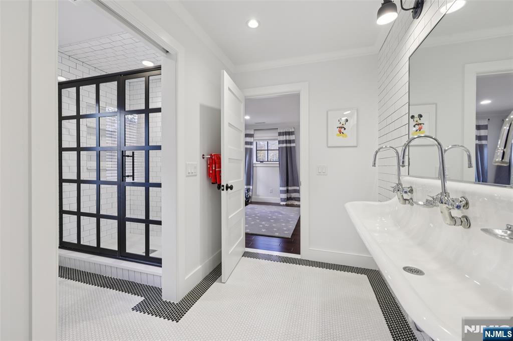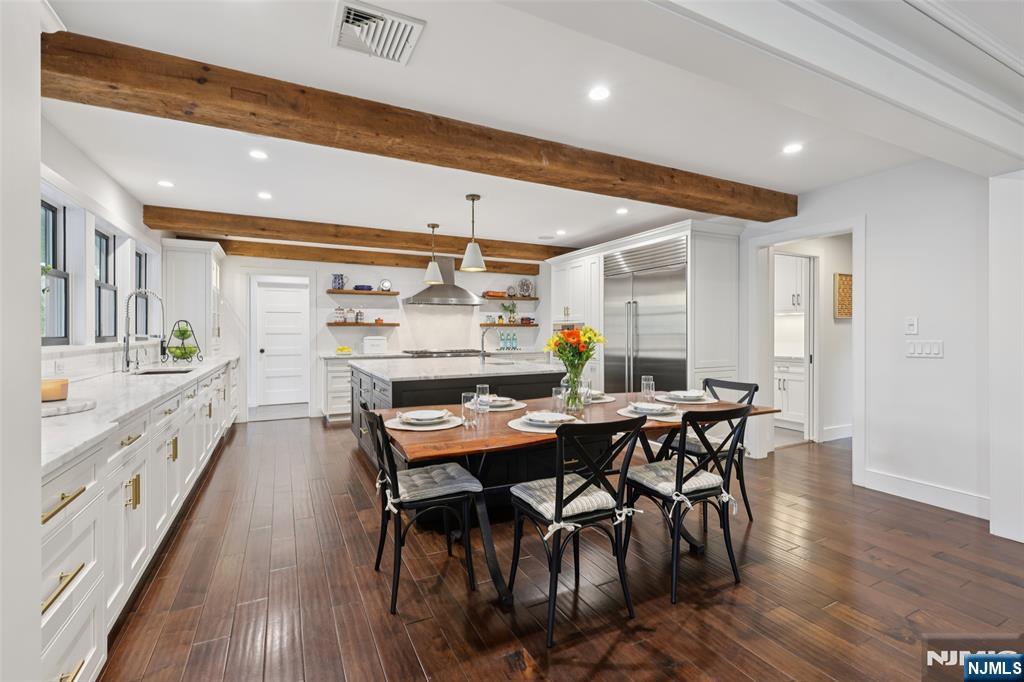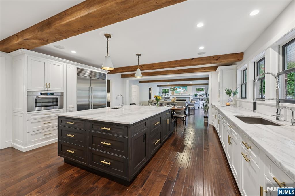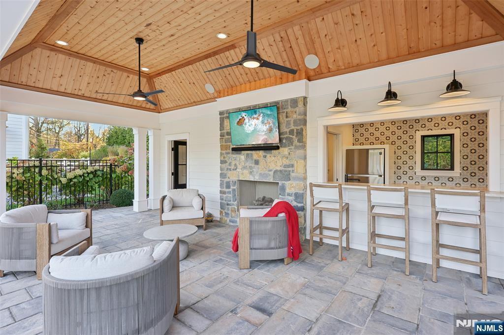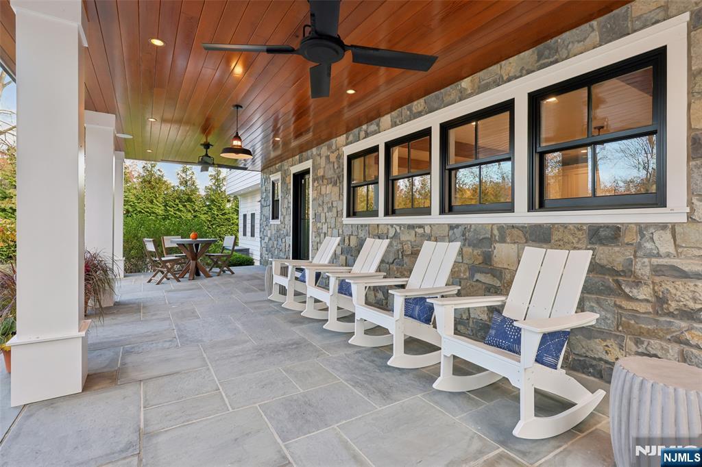 Discover the pinnacle of luxury living with this 2016 Modern Farmhouse, one of Allendale's showcase homes featured in numerous design magazines. Situated on 0.92 acres, this exquisite property boasts a new resort-style backyard with a saltwater pool/hot tub, a fully equipped pool house with an outdoor fireplace, blue-stone patio, built-in grill, and architecturally landscaped grounds. Inside, enjoy seamlessly flowing, light-filled living spaces adorned with designer features, reclaimed wood-beamed ceilings, and oversized windows. The heart of the home is a spacious open layout comprised of a gourmet chef's kitchen with WOLF/SUB-ZERO appliances, an oversized center island, leather-finish quartz countertops, and a family room with a fireplace and a wall of glass doors leading to a covered patio. The first level also includes a formal dining room, living room, private office, pantry, wet bar, wine/coffee bar, mudroom, and 2 powder rooms. Upstairs, the 4 generously sized bedrooms include a primary retreat with high ceilings, a large walk-in closet, and a spa-like bathroom. The impressive recently finished basement offers a carefully curated wine room/bar with a temperature-controlled cellar, a gym, a theater room with built-in surround sound, and a full bath. Located in a prime Allendale location with easy access to NYC transportation and top-rated schools, this residence masterfully combines entertainment appeal with everyday comfort.