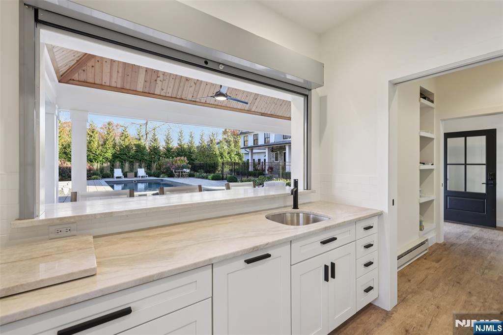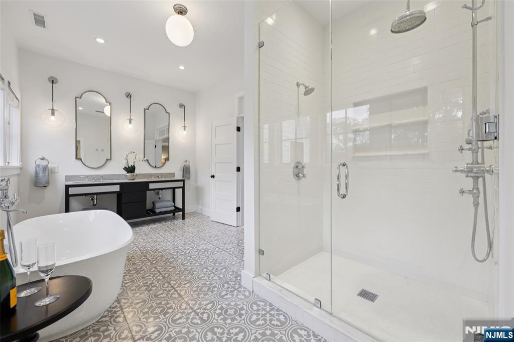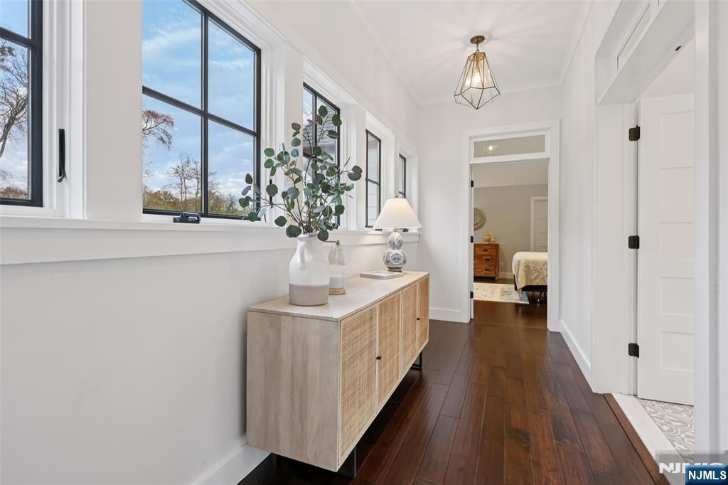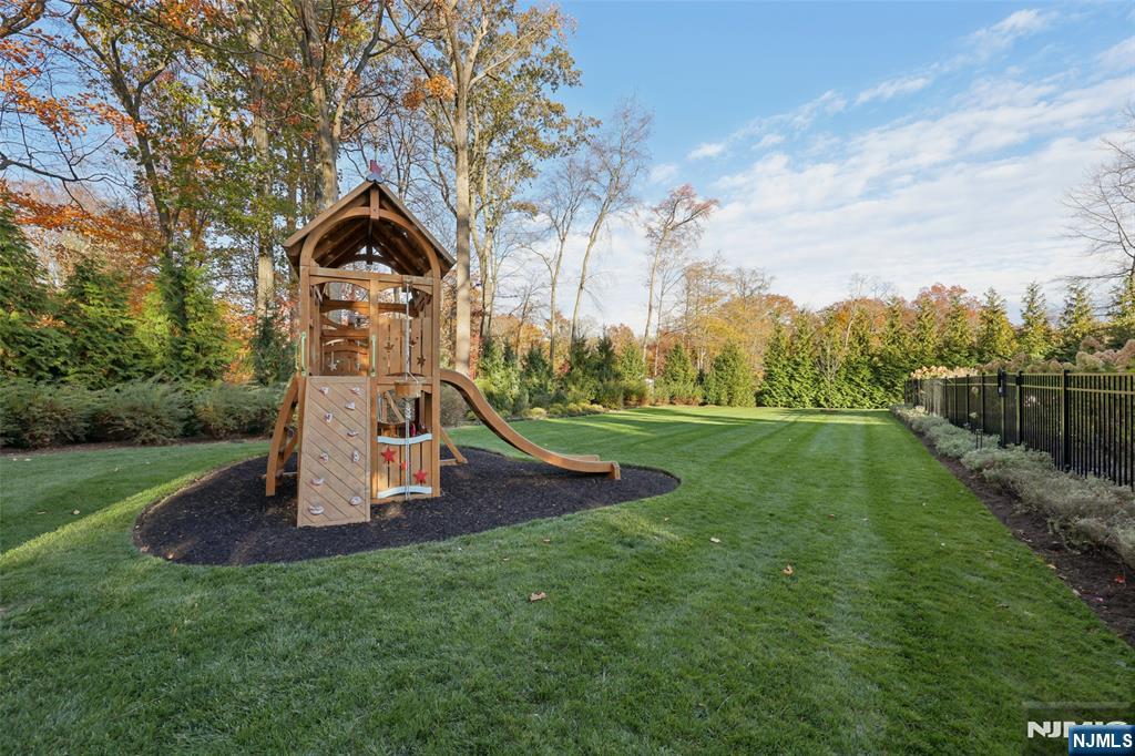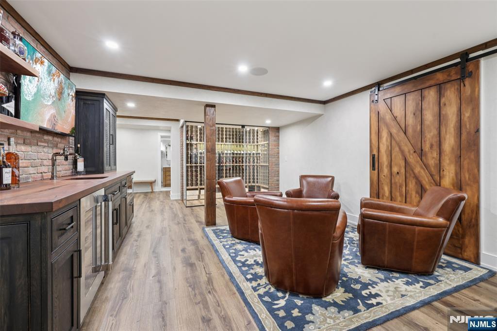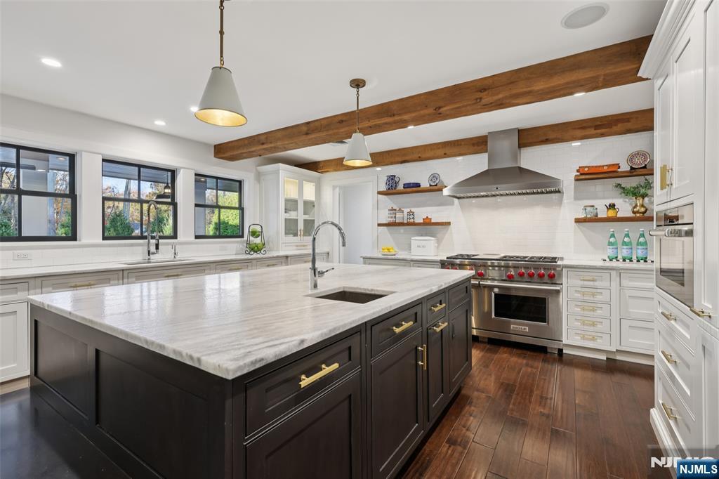 Discover the pinnacle of luxury living with this 2016 Modern Farmhouse, one of Allendale's showcase homes featured in numerous design magazines. Situated on 0.92 acres, this exquisite property boasts a new resort-style backyard with a saltwater pool/hot tub, a fully equipped pool house with an outdoor fireplace, blue-stone patio, built-in grill, and architecturally landscaped grounds. Inside, enjoy seamlessly flowing, light-filled living spaces adorned with designer features, reclaimed wood-beamed ceilings, and oversized windows. The heart of the home is a spacious open layout comprised of a gourmet chef's kitchen with WOLF/SUB-ZERO appliances, an oversized center island, leather-finish quartz countertops, and a family room with a fireplace and a wall of glass doors leading to a covered patio. The first level also includes a formal dining room, living room, private office, pantry, wet bar, wine/coffee bar, mudroom, and 2 powder rooms. Upstairs, the 4 generously sized bedrooms include a primary retreat with high ceilings, a large walk-in closet, and a spa-like bathroom. The impressive recently finished basement offers a carefully curated wine room/bar with a temperature-controlled cellar, a gym, a theater room with built-in surround sound, and a full bath. Located in a prime Allendale location with easy access to NYC transportation and top-rated schools, this residence masterfully combines entertainment appeal with everyday comfort.