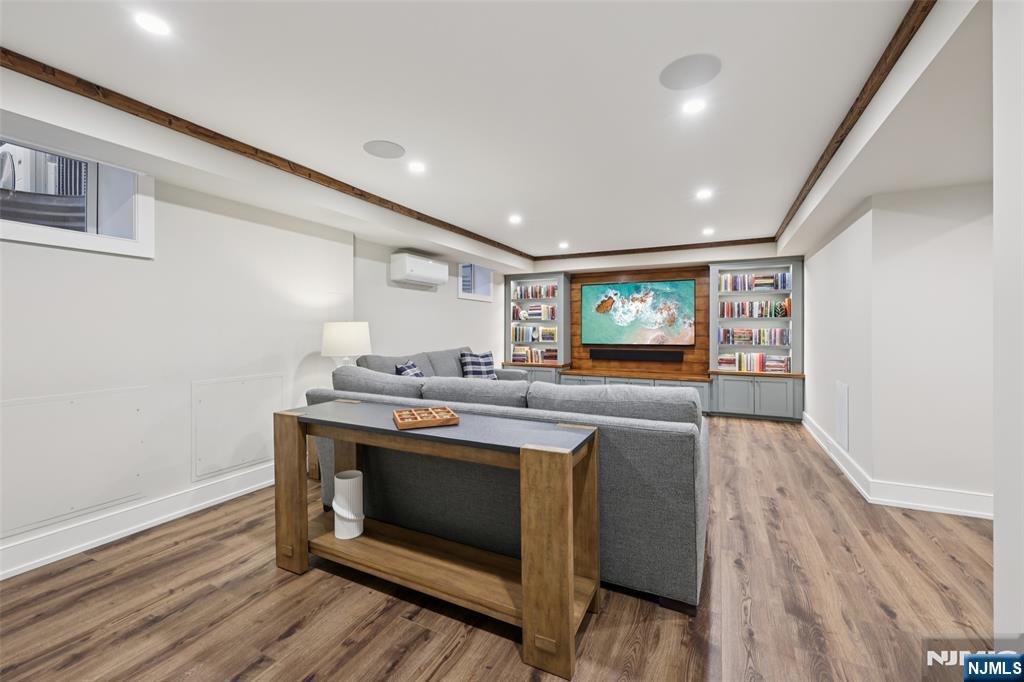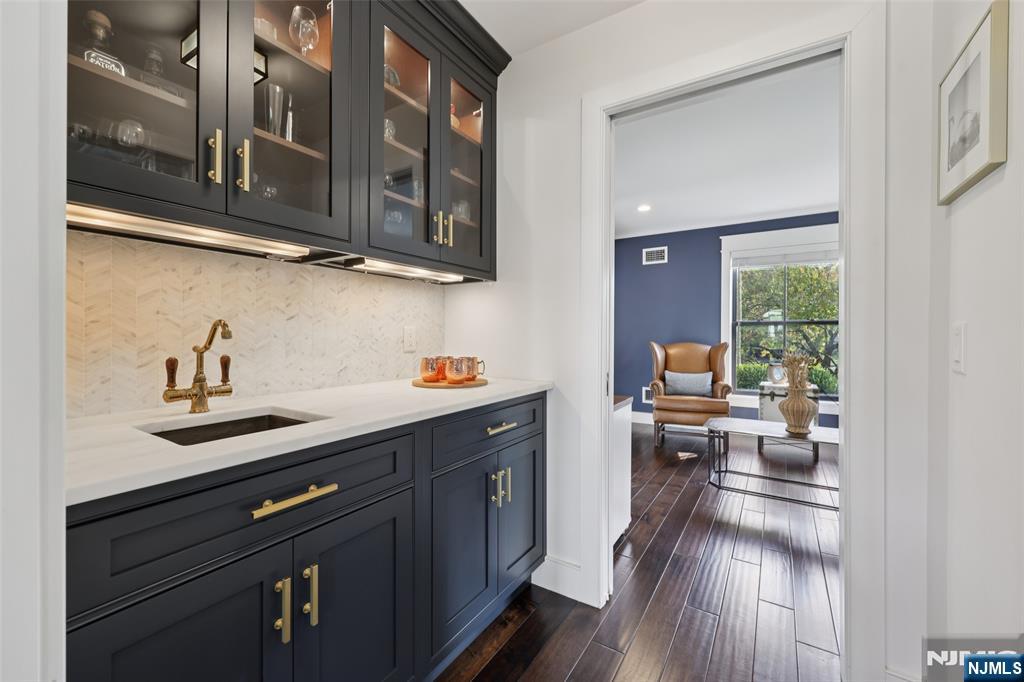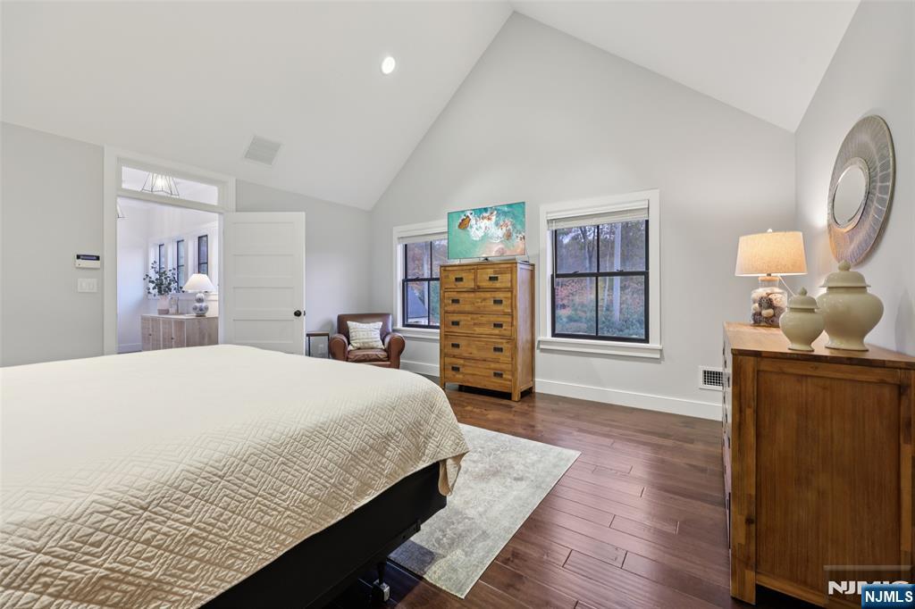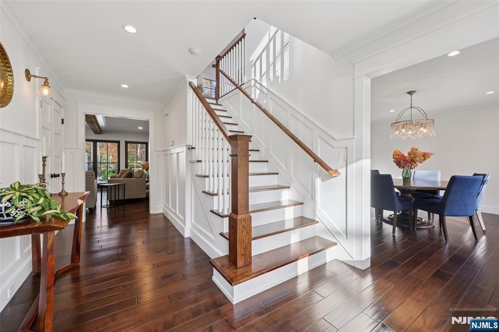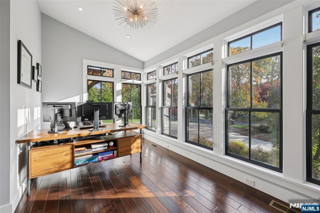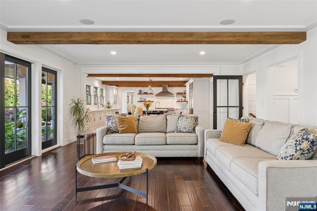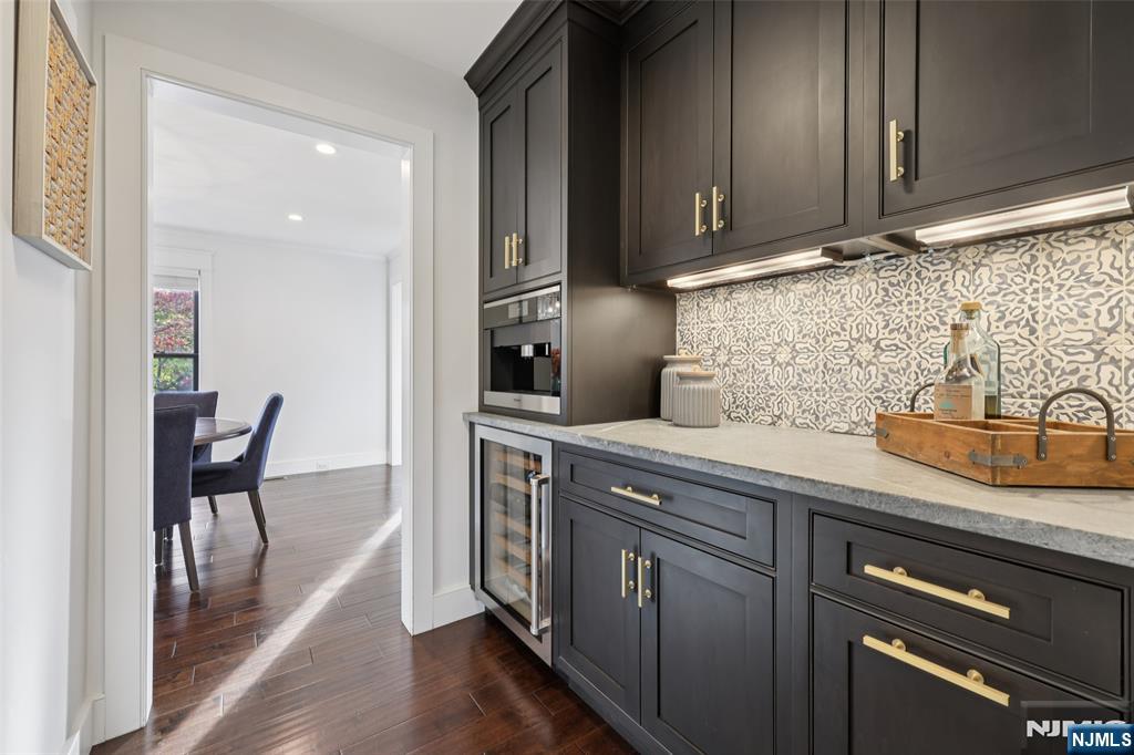 Discover the pinnacle of luxury living with this 2016 Modern Farmhouse, one of Allendale's showcase homes featured in numerous design magazines. Situated on 0.92 acres, this exquisite property boasts a new resort-style backyard with a saltwater pool/hot tub, a fully equipped pool house with an outdoor fireplace, blue-stone patio, built-in grill, and architecturally landscaped grounds. Inside, enjoy seamlessly flowing, light-filled living spaces adorned with designer features, reclaimed wood-beamed ceilings, and oversized windows. The heart of the home is a spacious open layout comprised of a gourmet chef's kitchen with WOLF/SUB-ZERO appliances, an oversized center island, leather-finish quartz countertops, and a family room with a fireplace and a wall of glass doors leading to a covered patio. The first level also includes a formal dining room, living room, private office, pantry, wet bar, wine/coffee bar, mudroom, and 2 powder rooms. Upstairs, the 4 generously sized bedrooms include a primary retreat with high ceilings, a large walk-in closet, and a spa-like bathroom. The impressive recently finished basement offers a carefully curated wine room/bar with a temperature-controlled cellar, a gym, a theater room with built-in surround sound, and a full bath. Located in a prime Allendale location with easy access to NYC transportation and top-rated schools, this residence masterfully combines entertainment appeal with everyday comfort.