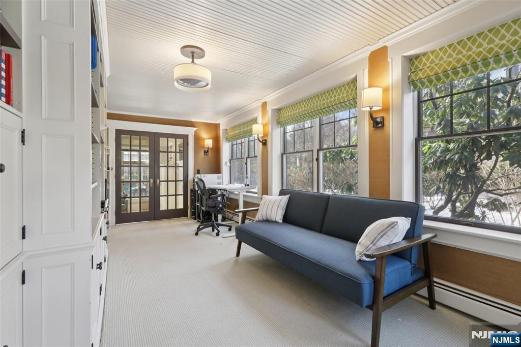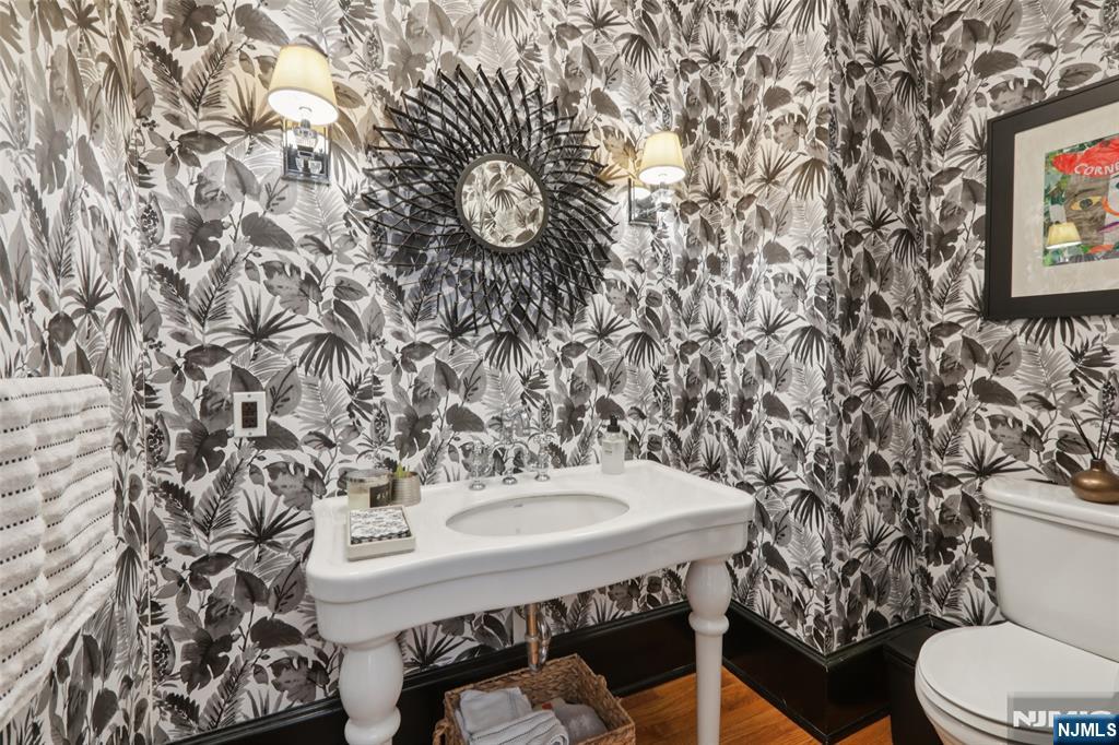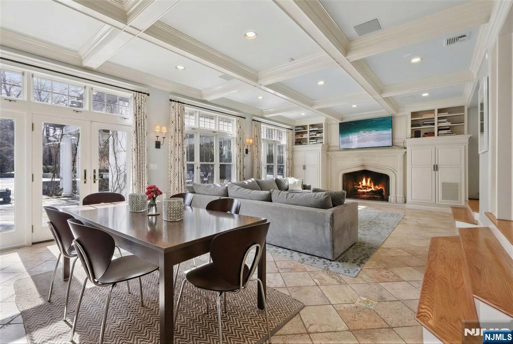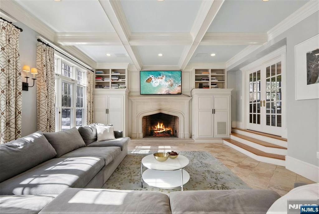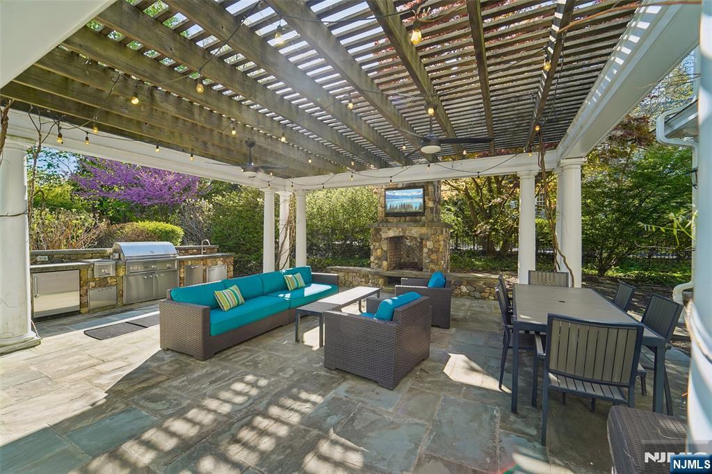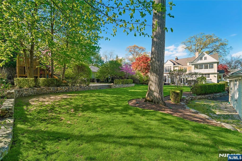 Exceptional Center Hall Colonial in Ridgewood's prestigious Old Country Club section, masterfully blending classic architectural integrity with a sophisticated, modern aesthetic. Set on a sprawling 0.7-acre level lot, the residence underwent extensive upgrades that elevated its traditional charm into a turn-key sanctuary for today's contemporary buyer. The expansive, completely level, backyard is the ultimate retreat with a bluestone patio and a pergola that serves as an outdoor lounge with a full kitchen, fireplace, and dedicated TV nook. The interior is defined by an airy, light-filled layout complemented by hardwood floors, 4 fireplaces, and exquisite ceiling details. At the focal point of the home is a gourmet kitchen boasting honed Calacatta Gold marble, a striking walnut butcher-block island, and a counter-height hearth. A spectacular great room flows seamlessly from the kitchen, both with radiant heated floors, offering a 10' coffered ceiling, cast stone fireplace, and elegant French doors. Wrapping up the main level are banquet-sized dining and living rooms, a private office, mudroom, and powder room. Upstairs, the large primary suite includes a tray ceiling, a private balcony, and a spa-like bath with a steam shower and radiant heat. Upper levels include 6 generous bedrooms total, while the finished basement offers versatile rec space. Located near top schools and transportation to NYC, this property is a rare fusion of historic craftsmanship and current-day luxury!