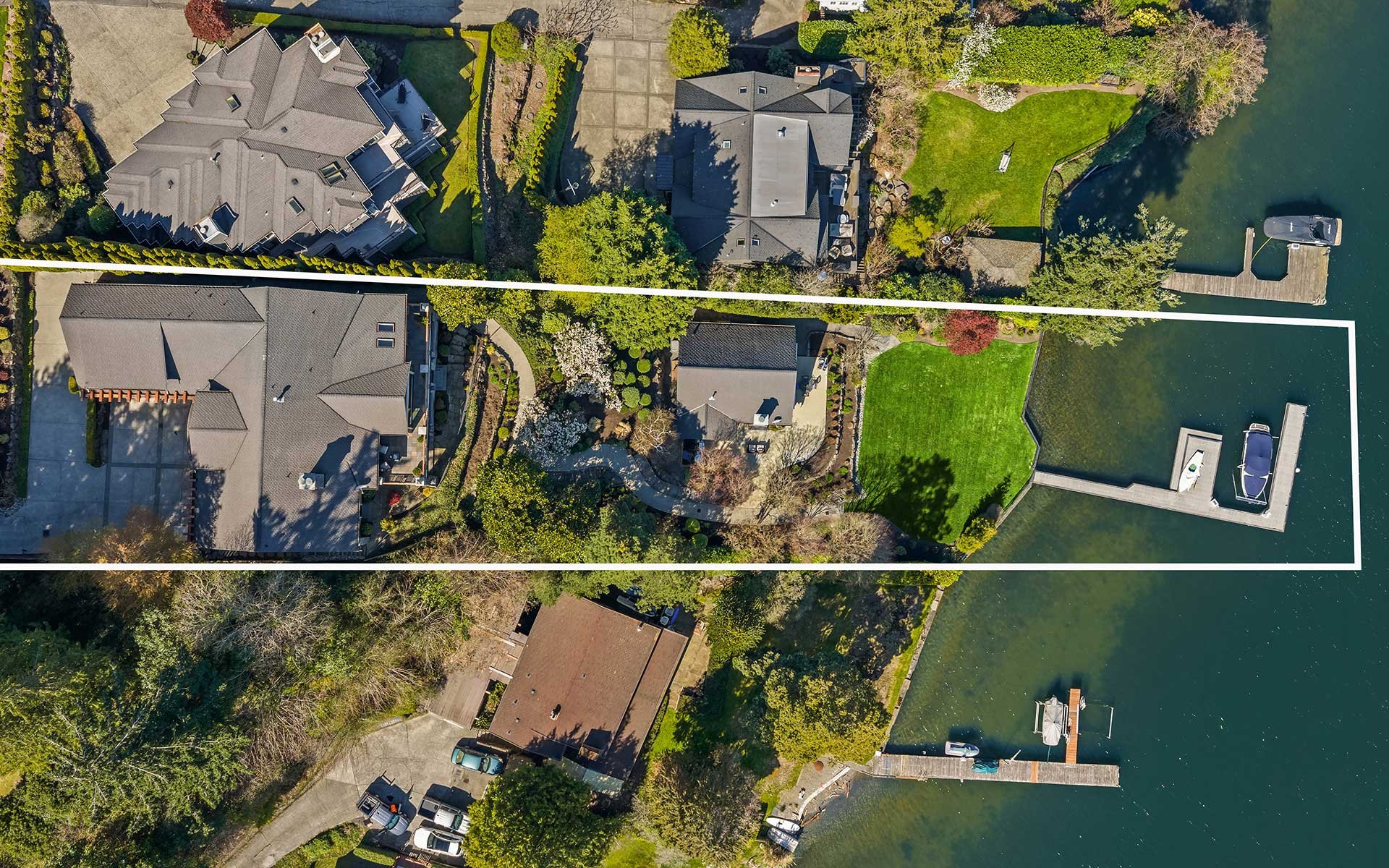 A Modern Craftsman has come available on the desirable north end! Offering 90 feet of sparkling waterfront, a boater's dream dock & an unforgettable beachside guest house, this exceptional property is set on a 1/2 acre of richly manicured grounds w/ a pancake flat lawn stretching right to the water's edge. Inside, experience timeless architectural detail...chubby triple crown molding, board-and-batten 3/4 wainscot, an absolute exquisite level of craftsmanship awaits. Entertain in the Epicurean's dream kitchen where a massive island anchors the rm, offering space for gathering, prepping & entertaining. Flow seamlessly into the Great Rm, where an entire window wall & double sets of French doors open, blurring the line between the outdoors & the in. A separate upper wing hosts an expansive office/apartment suite w/ kitchenette ideal for work, guests, or multigenerational living. Retreat to the main flr primary, a sanctuary in itself, w/ stunning views & bath area reminiscent of a Four Seasons spa. The lower level unfolds into a wonderland of space w/ 3 bdrms (1 an ensuite), exercise + big bonus/billiard rm. At the shoreline, discover a charming 1-bdrm beachhouse w/ upper view loft that could be the perfect music rm, office or art studio. Control 4 smart home. 3 laundry rms. 5 bdrm/4.5 bth, 5,535 sf main house, 1 bdrm/1bth, 950 sf casita. With a 3-car garage, generous auto court & newer boat ready dock, you'll never want to leave. Welcome home to the ultimate in wtrfrnt living!