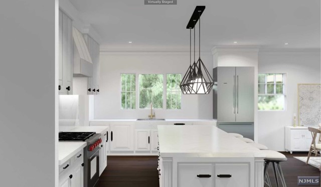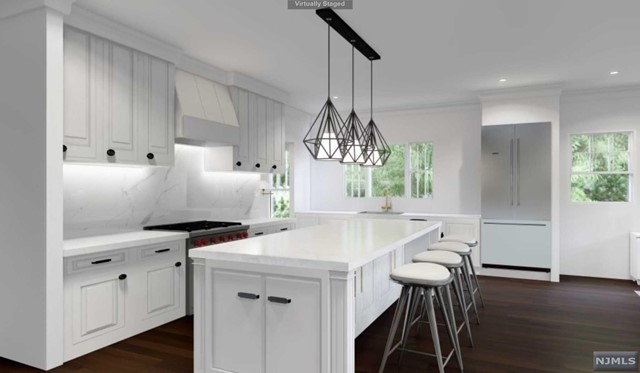 COMPLETION SUMMER 2024 - move in before school! This custom-built Colonial (existing foundation) with 5-bed/4.5-bath is designed by a renowned local architect and newly constructed by a reputable builder. Located in the heart of Ridgewood, just a stone's throw from downtown, NYC-bound train, Ridge E.S. and GWMS. Prepare to be impressed by an open layout, with a formal living room with fireplace, convenient 1st floor guest en-suite/office, gourmet kitchen with Wolf/Subzero appliances, walk-in pantry, large breakfast area, and 9' foot ceilings. Kitchen overlooks dining room & great room with cathedral ceiling, fireplace and double patio doors that open to the backyard. All bedrooms ensuite including the 2nd level primary suite with a spacious walk-in closet and a spa-like bathroom with a free-standing tub, double vanity and stand-alone shower. Finished basement, attached garage, level 0.5-acre property with room for a pool, 2-car detached garage (in addition to the 1-car attached garage) and carriage house.