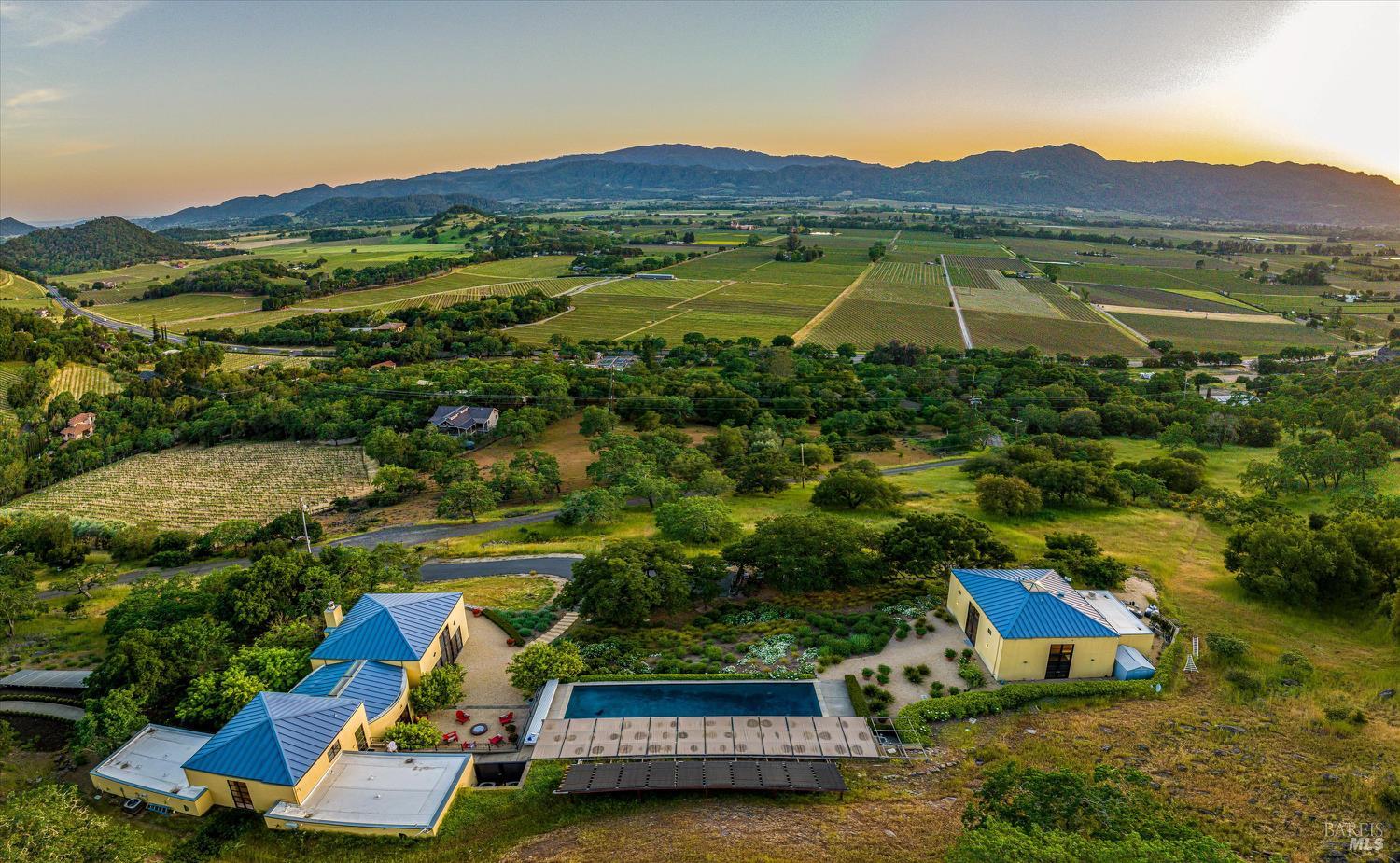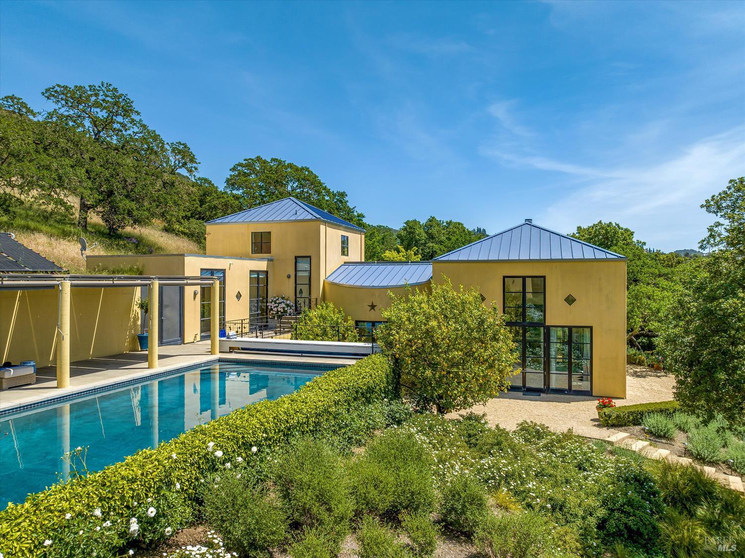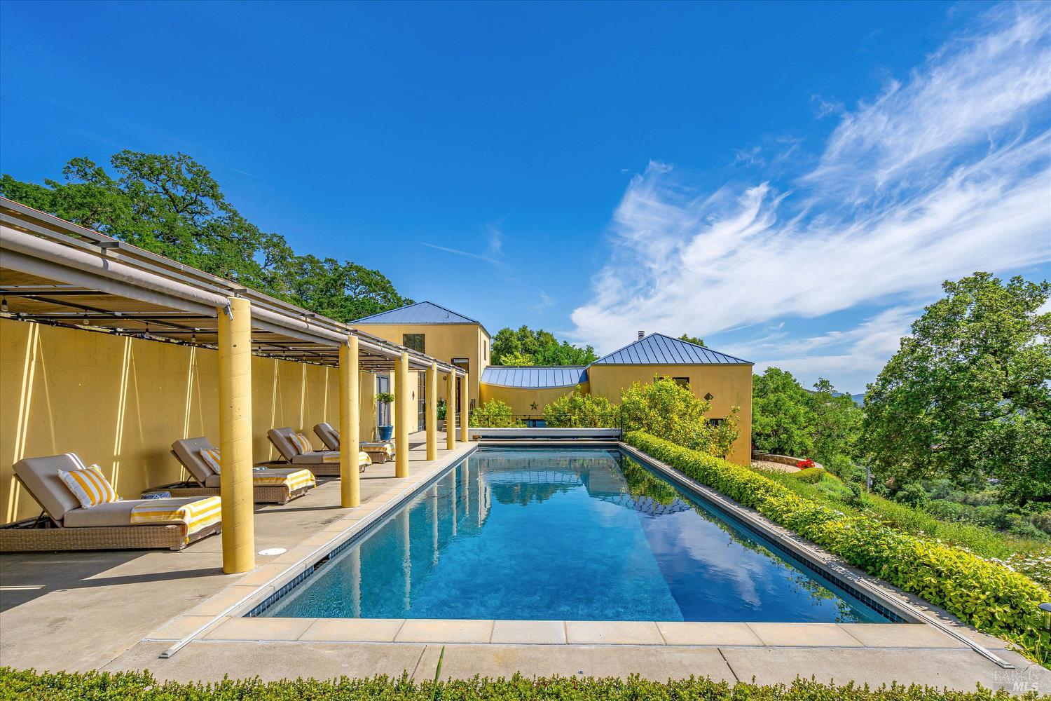 Sited on 41+/- acres in the heart of Oakville, this home serves as the ultimate getaway. A private retreat where art, design, and breathtaking views come together in perfect harmony. Home to visionary architect and artist Nan Peletz, this stylish hideaway offers front row seats to Napa Valley's panoramic western views and stunning sunsets. Designed for those who appreciate beauty, creativity, and entertaining, the property features 3 bedrooms and 3.5 bathrooms totaling 3975 +/-SF, blending sophisticated interiors with a seamless connection to nature. A separate guest house/artist studio with a kitchenette and bath creates a private space for inspiration, or overnight guests who never want to leave. Lush gardens and intimate outdoor spaces invite alfresco dining, while the heated lap pool sets the stage for lazy afternoons under the sun. Whether you're hosting unforgettable soires or savoring a quiet glass of wine, this is the place where life's best moments happen. Just minutes from the Michelin starred restaurants of Yountville and the charm of St. Helena, this is more than a home, it's a lifestyle. Do not miss this fabulous modern sanctuary in the heart of Wine Country!
