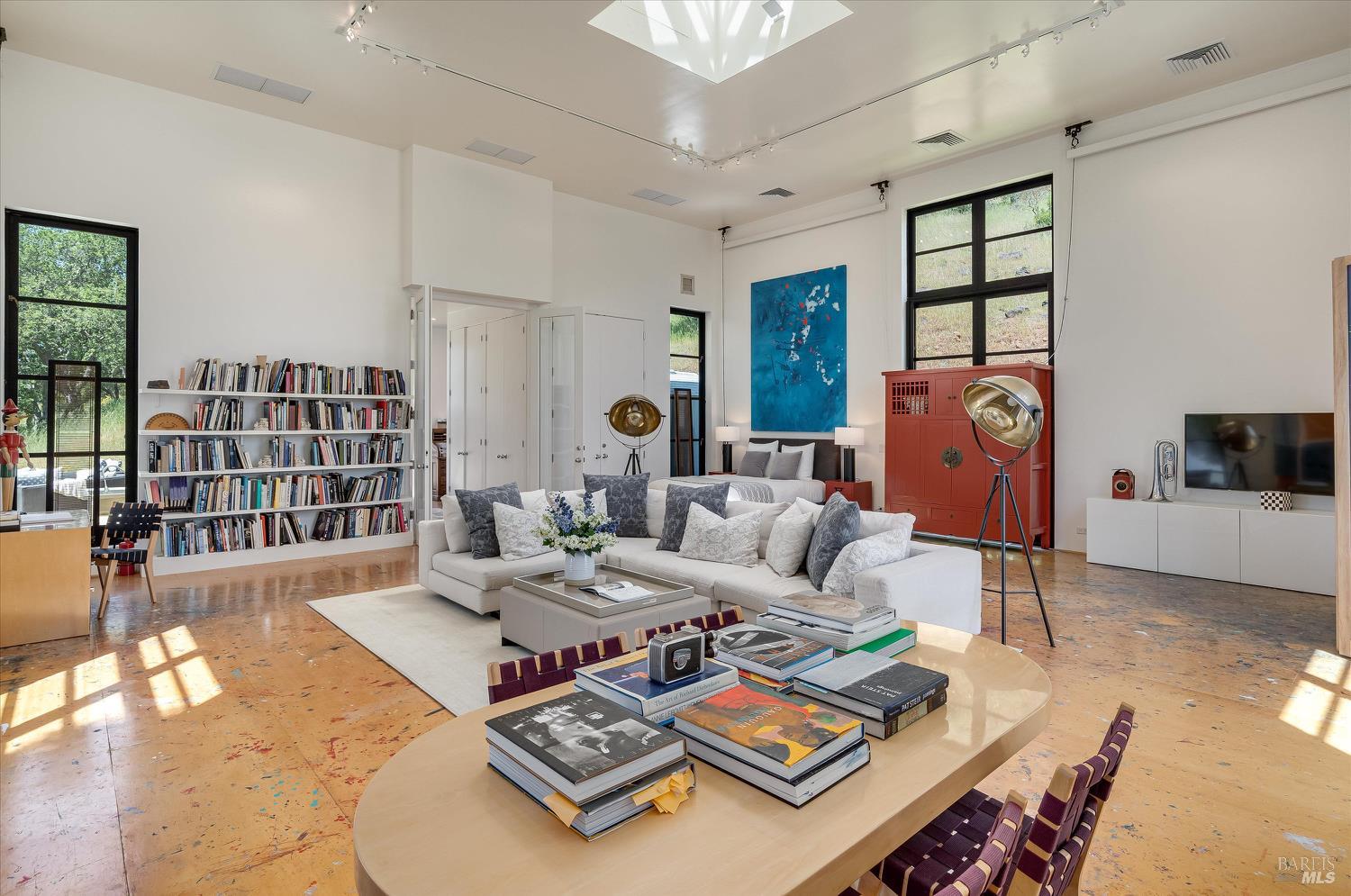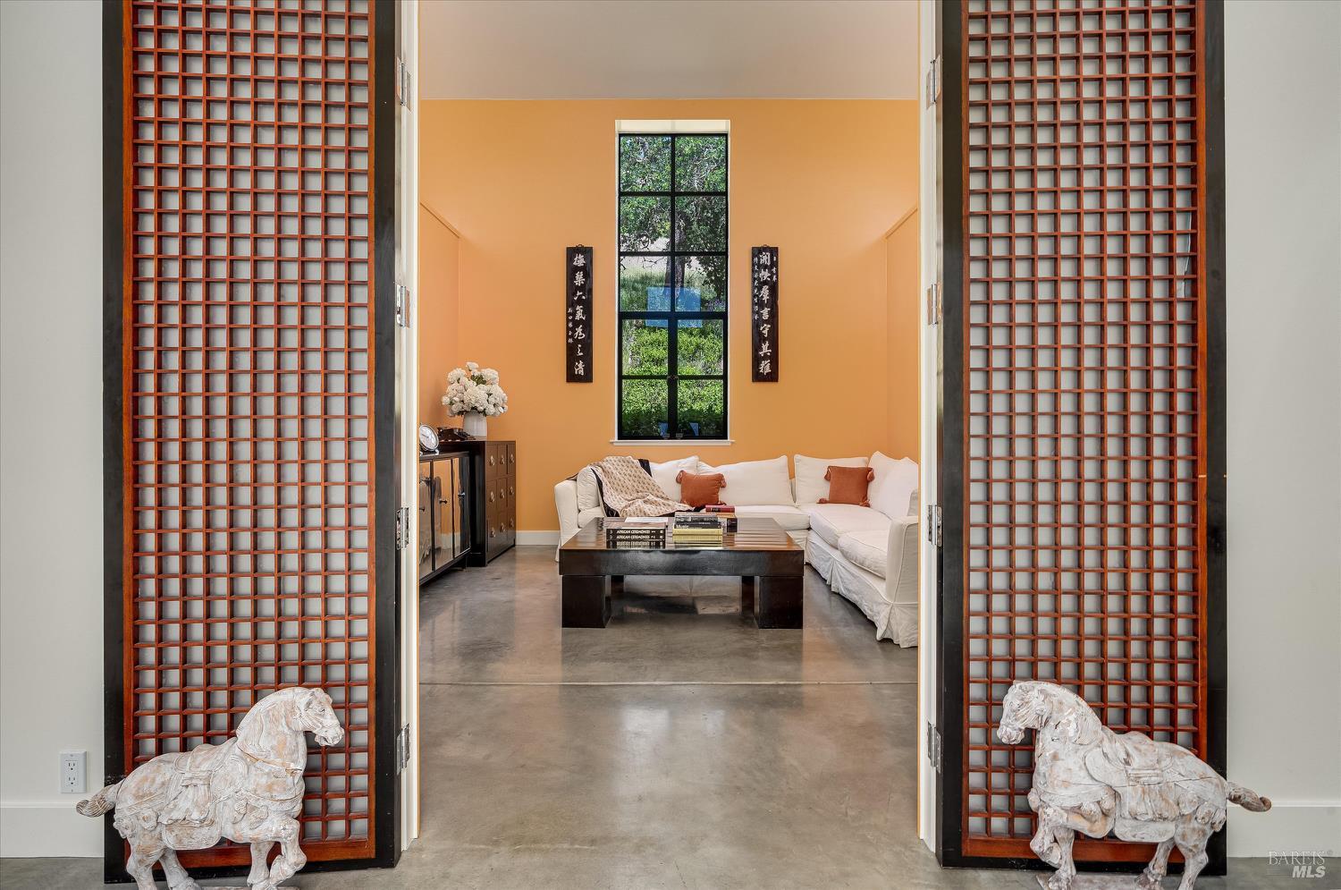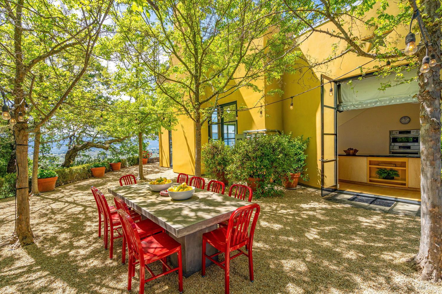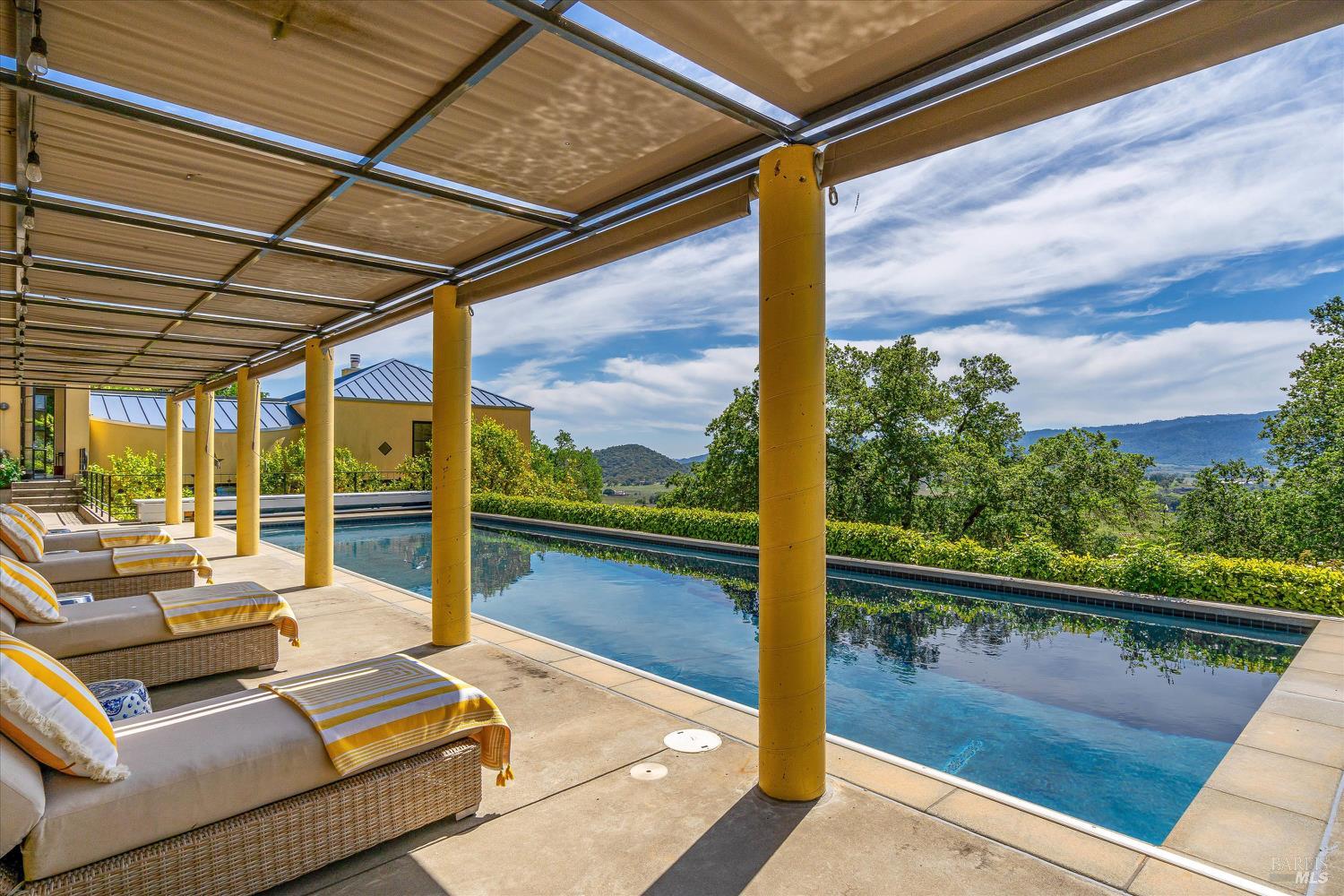 Sited on 41+/- acres in the heart of Oakville, this home serves as the ultimate getaway. A private retreat where art, design, and breathtaking views come together in perfect harmony. Home to visionary architect and artist Nan Peletz, this stylish hideaway offers front row seats to Napa Valley's panoramic western views and stunning sunsets. Designed for those who appreciate beauty, creativity, and entertaining, the property features 3 bedrooms and 3.5 bathrooms totaling 3975 +/-SF, blending sophisticated interiors with a seamless connection to nature. A separate guest house/artist studio with a kitchenette and bath creates a private space for inspiration, or overnight guests who never want to leave. Lush gardens and intimate outdoor spaces invite alfresco dining, while the heated lap pool sets the stage for lazy afternoons under the sun. Whether you're hosting unforgettable soires or savoring a quiet glass of wine, this is the place where life's best moments happen. Just minutes from the Michelin starred restaurants of Yountville and the charm of St. Helena, this is more than a home, it's a lifestyle. Do not miss this fabulous modern sanctuary in the heart of Wine Country!
