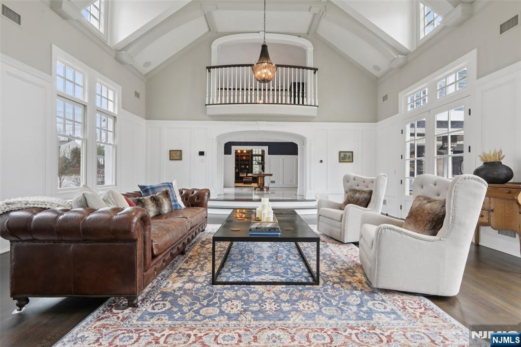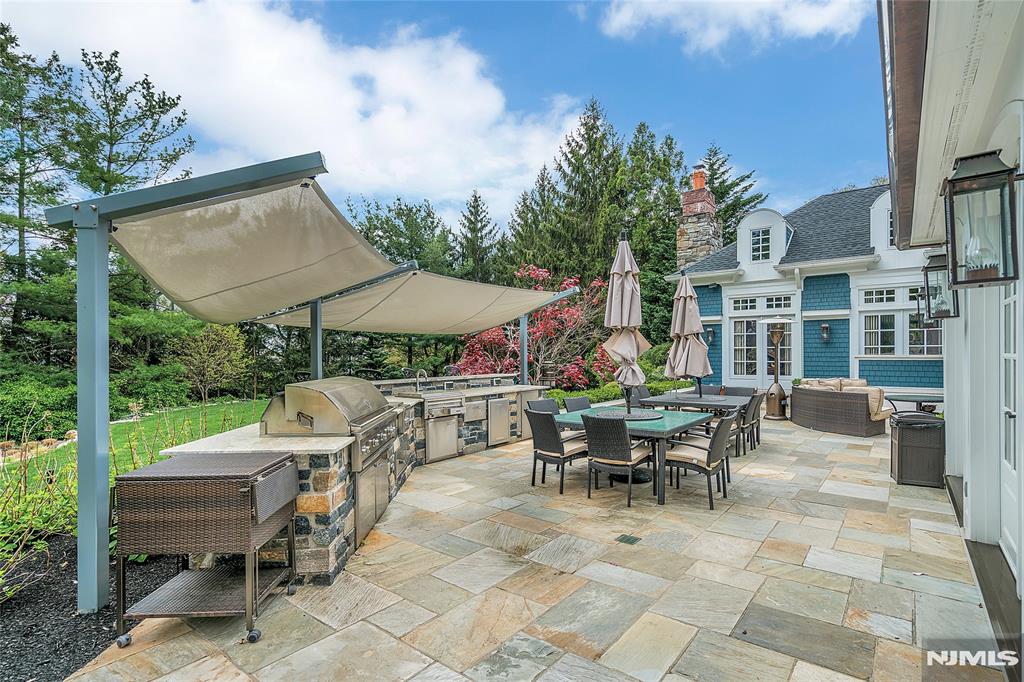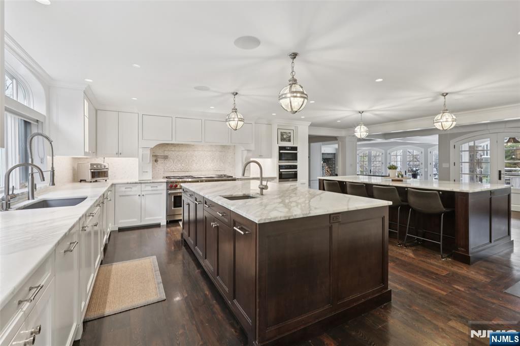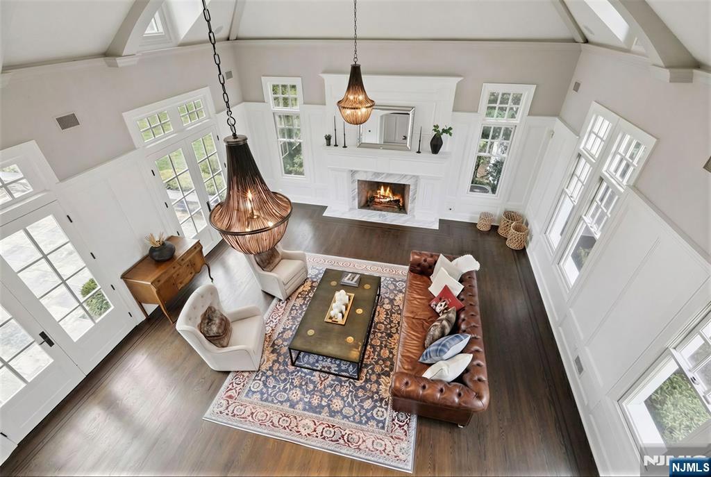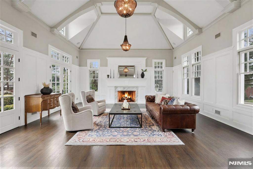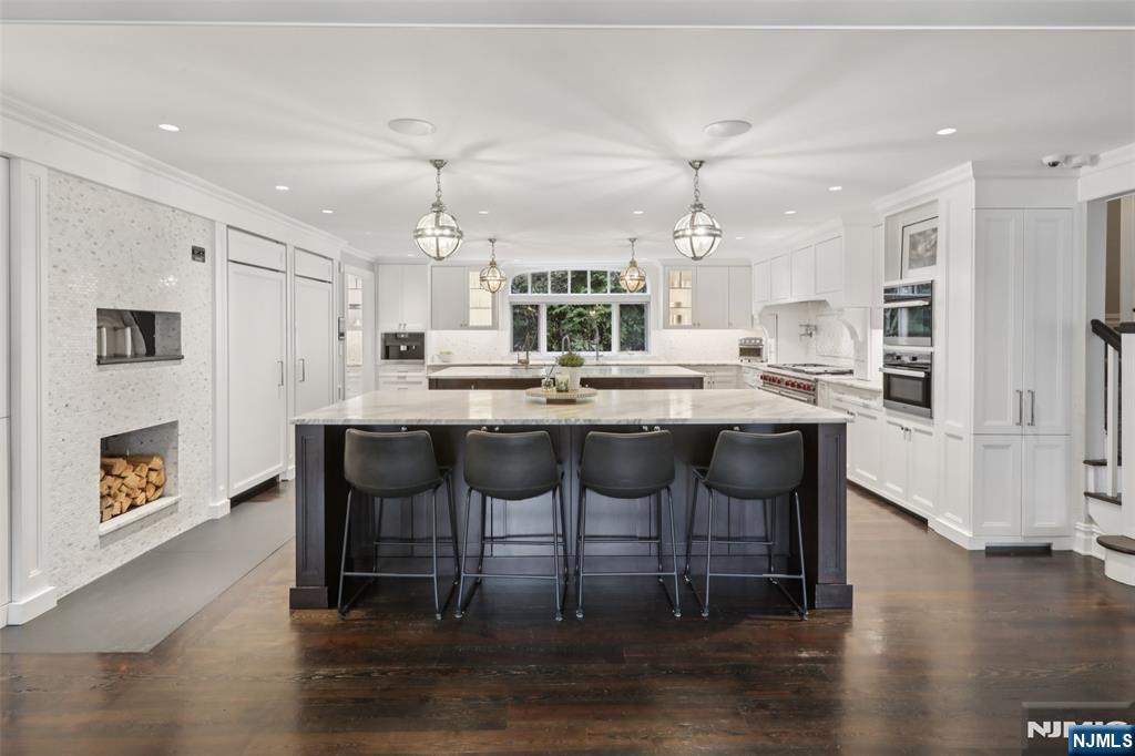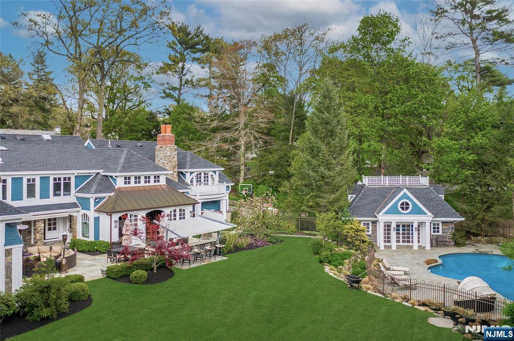Poised in the prestigious Heights section of Ridgewood, this masterfully designed estate offers over 10,000 SF of sophisticated living space on nearly an acre of resort-like grounds. A true architectural sanctuary, the smart-integrated residence opens with a gorgeous 2-story foyer that leads to a great room at the home's focal point, with soaring ceilings and one of the property's 5 fireplaces. The heart of the home is a culinary dream - a gourmet kitchen anchored by dual 5'x9' Calcutta Gold marble islands and professional-grade Wolf/Sub-Zero appliances, including a built-in Earthstone pizza oven that opens to a family room with a fireplace, both lined with floor-to-ceiling windows and French doors overlooking the private backyard. The versatile floor plan also includes a banquet-sized dining room, stately den, ensuite bedroom/office, mudroom, and access to the 3-car garage. Luxuriate in the primary suite featuring a private balcony, and dual full bathrooms, both with radiant heat and a massive California closet. Entertainment reaches new heights in the expansive basement, boasting a wine room and a state-of-the-art movie theater. Transitioning outdoors, the fenced yard hosts a freeform gunite pool, a massive bluestone patio, and a designer kitchen outfitted with a full suite of Lynx appliances. Completing the home is a fully equipped pool house with a living room, kitchen, laundry, and bedroom/loft - all just a short stroll from downtown, schools, and the train to NYC.