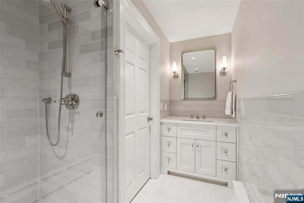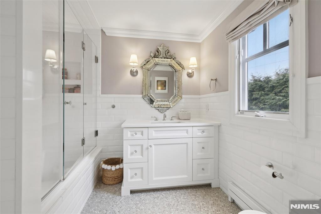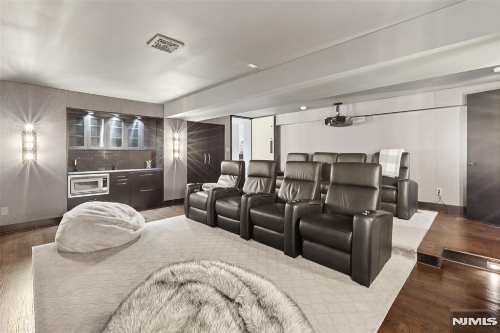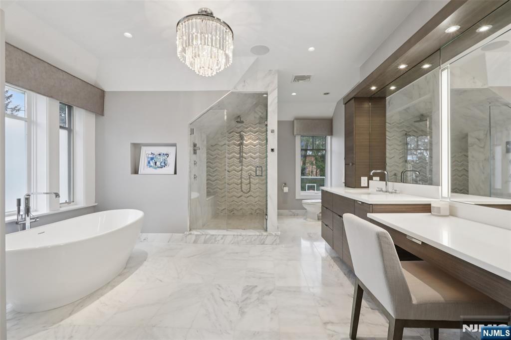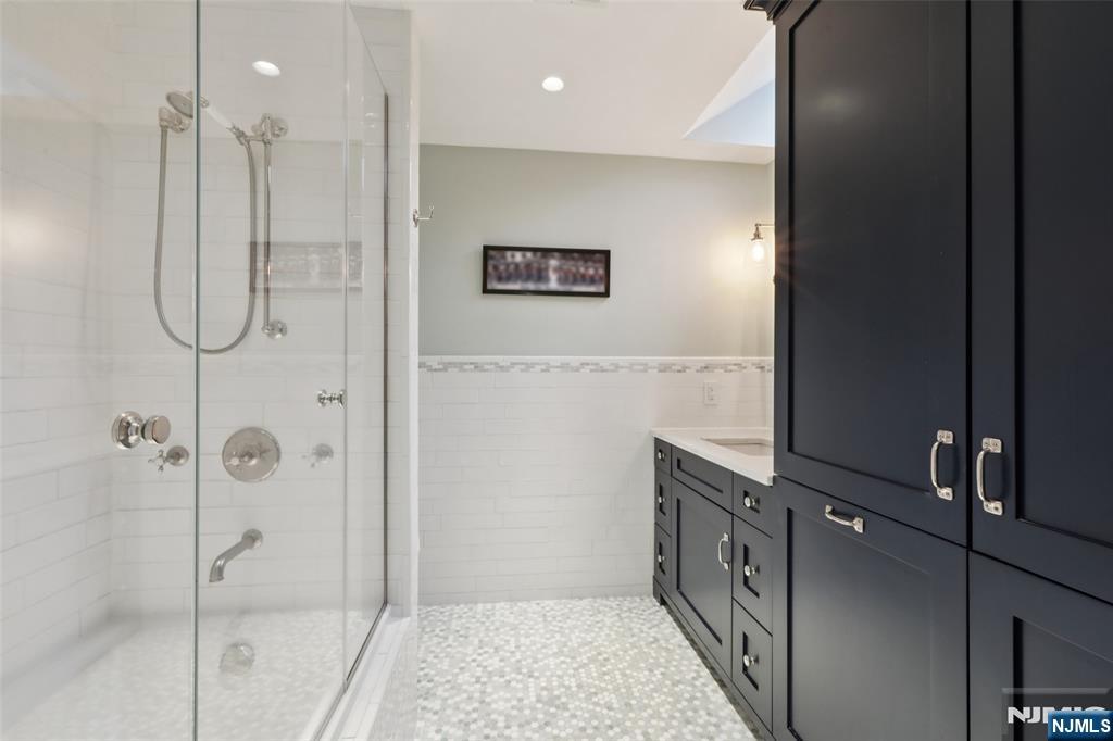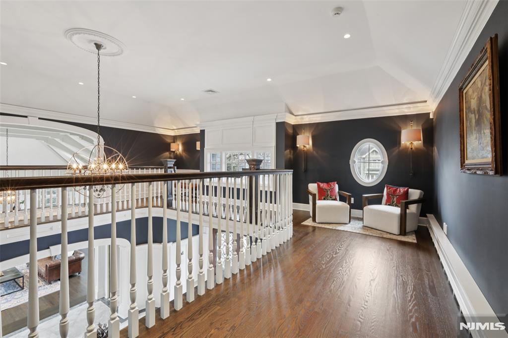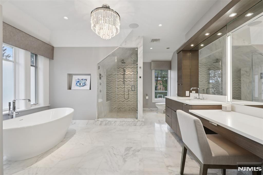Poised in the prestigious Heights section of Ridgewood, this masterfully designed estate offers over 10,000 SF of sophisticated living space on nearly an acre of resort-like grounds. A true architectural sanctuary, the smart-integrated residence opens with a gorgeous 2-story foyer that leads to a great room at the home's focal point, with soaring ceilings and one of the property's 5 fireplaces. The heart of the home is a culinary dream - a gourmet kitchen anchored by dual 5'x9' Calcutta Gold marble islands and professional-grade Wolf/Sub-Zero appliances, including a built-in Earthstone pizza oven that opens to a family room with a fireplace, both lined with floor-to-ceiling windows and French doors overlooking the private backyard. The versatile floor plan also includes a banquet-sized dining room, stately den, ensuite bedroom/office, mudroom, and access to the 3-car garage. Luxuriate in the primary suite featuring a private balcony, and dual full bathrooms, both with radiant heat and a massive California closet. Entertainment reaches new heights in the expansive basement, boasting a wine room and a state-of-the-art movie theater. Transitioning outdoors, the fenced yard hosts a freeform gunite pool, a massive bluestone patio, and a designer kitchen outfitted with a full suite of Lynx appliances. Completing the home is a fully equipped pool house with a living room, kitchen, laundry, and bedroom/loft - all just a short stroll from downtown, schools, and the train to NYC.