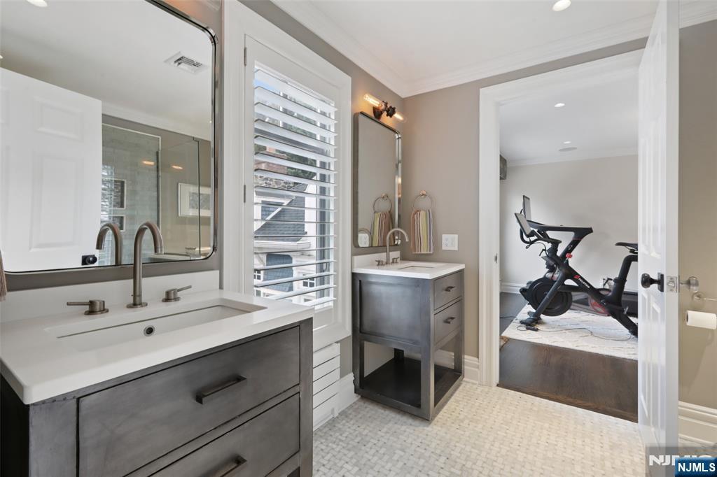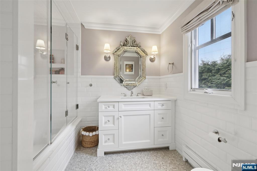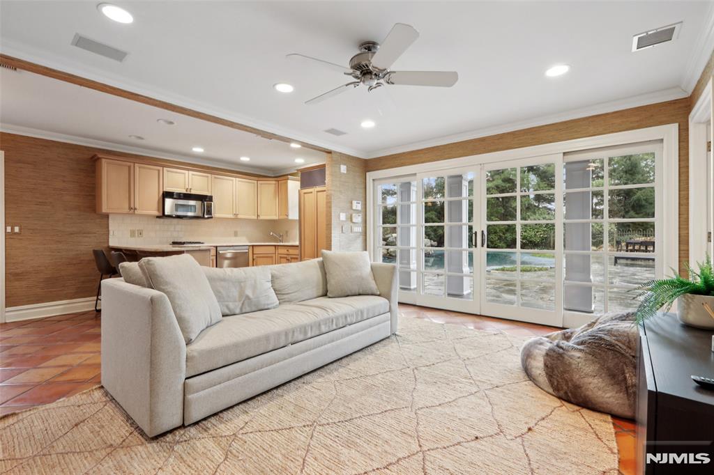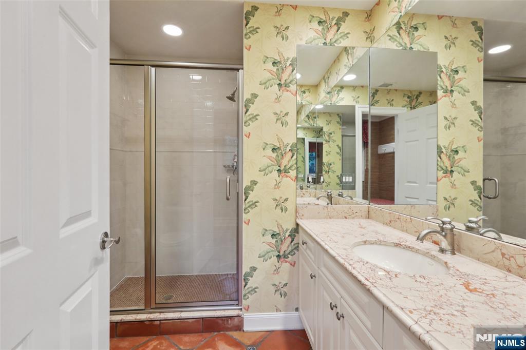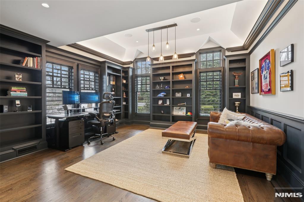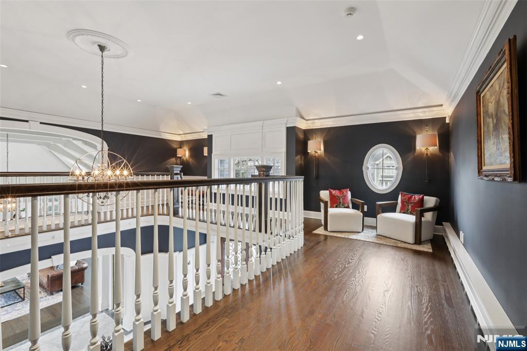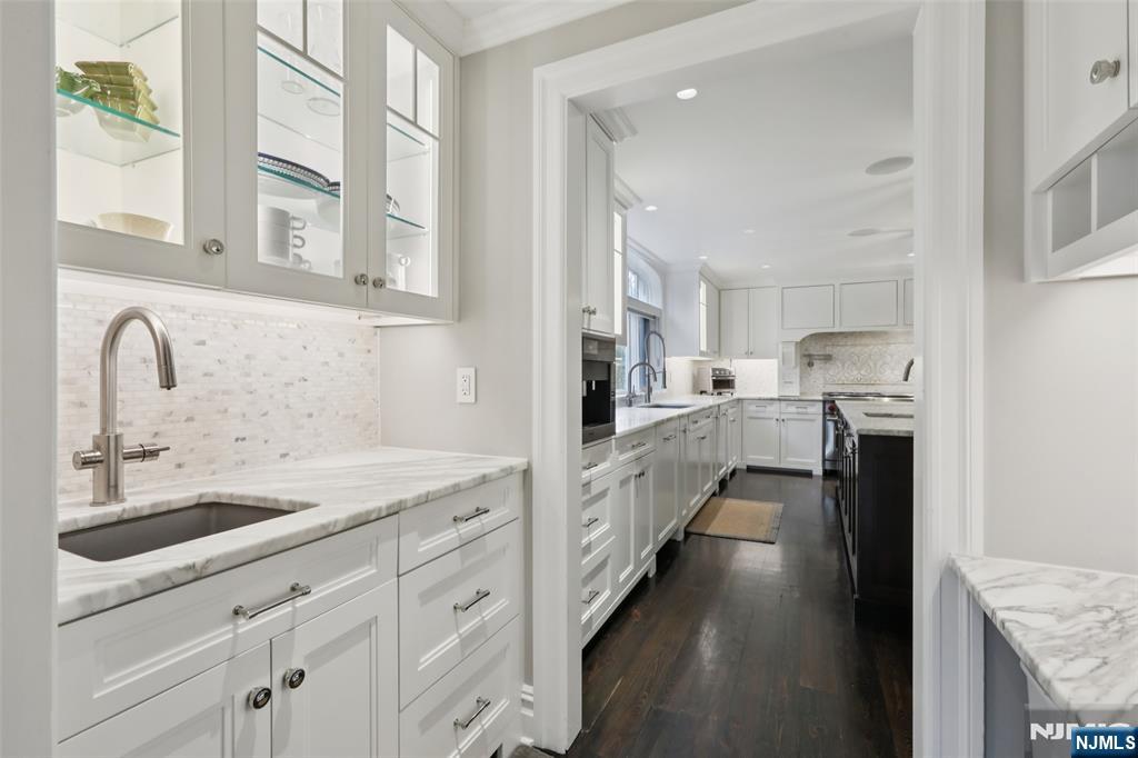 Poised in the prestigious Heights section of Ridgewood, this masterfully designed estate offers over 10,000 SF of sophisticated living space on nearly an acre of resort-like grounds. A true architectural sanctuary, the smart-integrated residence opens with a gorgeous 2-story foyer that leads to a great room at the home's focal point, with soaring ceilings and one of the property's 5 fireplaces. The heart of the home is a culinary dream - a gourmet kitchen anchored by dual 5'x9' Calcutta Gold marble islands and professional-grade Wolf/Sub-Zero appliances, including a built-in Earthstone pizza oven that opens to a family room with a fireplace, both lined with floor-to-ceiling windows and French doors overlooking the private backyard. The versatile floor plan also includes a banquet-sized dining room, stately den, ensuite bedroom/office, mudroom, and access to the 3-car garage. Luxuriate in the primary suite featuring a private balcony, and dual full bathrooms, both with radiant heat and a massive California closet. Entertainment reaches new heights in the expansive basement, boasting a wine room and a state-of-the-art movie theater. Transitioning outdoors, the fenced yard hosts a freeform gunite pool, a massive bluestone patio, and a designer kitchen outfitted with a full suite of Lynx appliances. Completing the home is a fully equipped pool house with a living room, kitchen, laundry, and bedroom/loft - all just a short stroll from downtown, schools, and the train to NYC.