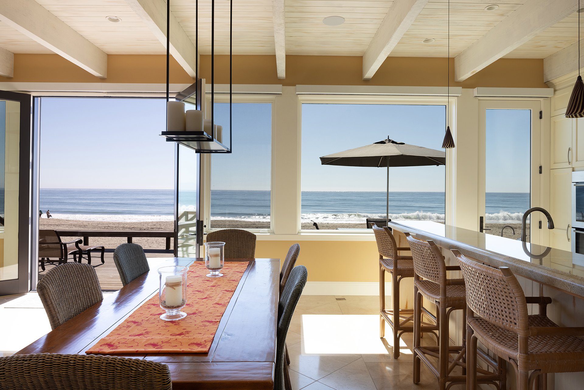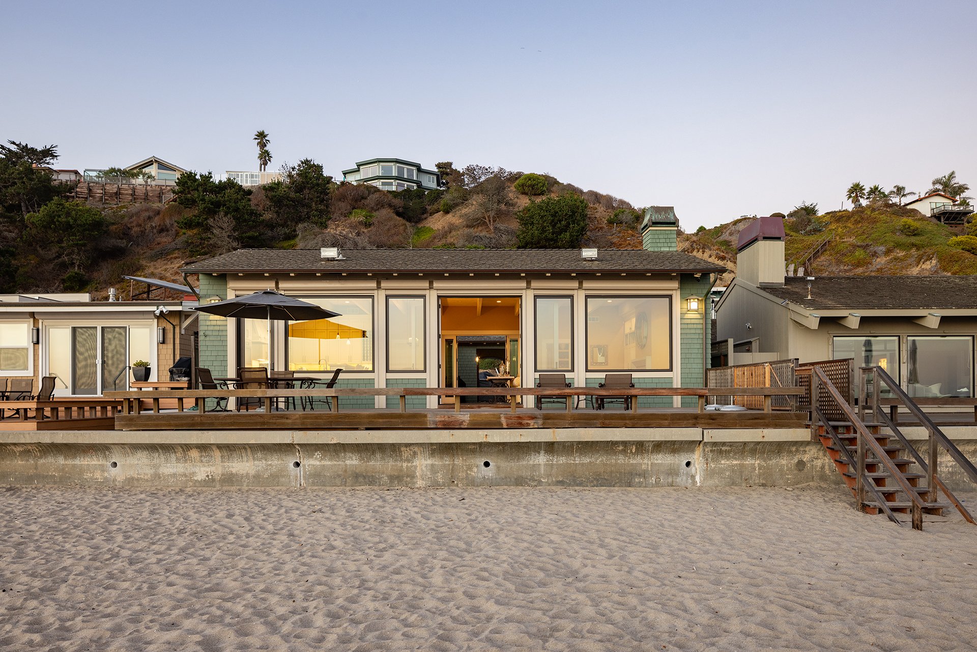 Welcome to your beachfront dream home at 553 Beach Drive in Aptos! Located behind the private gates of Rio Surf & Sand, this stunning 4-bed, 3-bath coastal retreat offers 2,244 sq ft of luxurious living on an expansive 10,193 sq ft lot. Masterfully designed by renowned architect Thatcher Thompson and impeccably constructed by DeMattei Construction in 2007, the home is thoughtfully designed around a central courtyard, creating a seamless indoor-outdoor flow ideal for entertaining or quiet relaxation. The light-filled great room features soaring ceilings, a gas-log fireplace with gas starter, and panoramic views of Monterey Bay. The open-concept kitchen boasts high-end finishes, a spacious island, and direct access to ocean-view decks. Beyond the discreet entry lies a central courtyard that gracefully connects the home’s wings through sliding doors, opening to reveal a stunning coastal panorama. The primary suite offers a serene escape, and three additional bedrooms provide flexibility for guests or a home office. Step outside to your private beachfront oasis with direct sand access and breathtaking views from Santa Cruz to Monterey. This is truly coastal living at its finest.