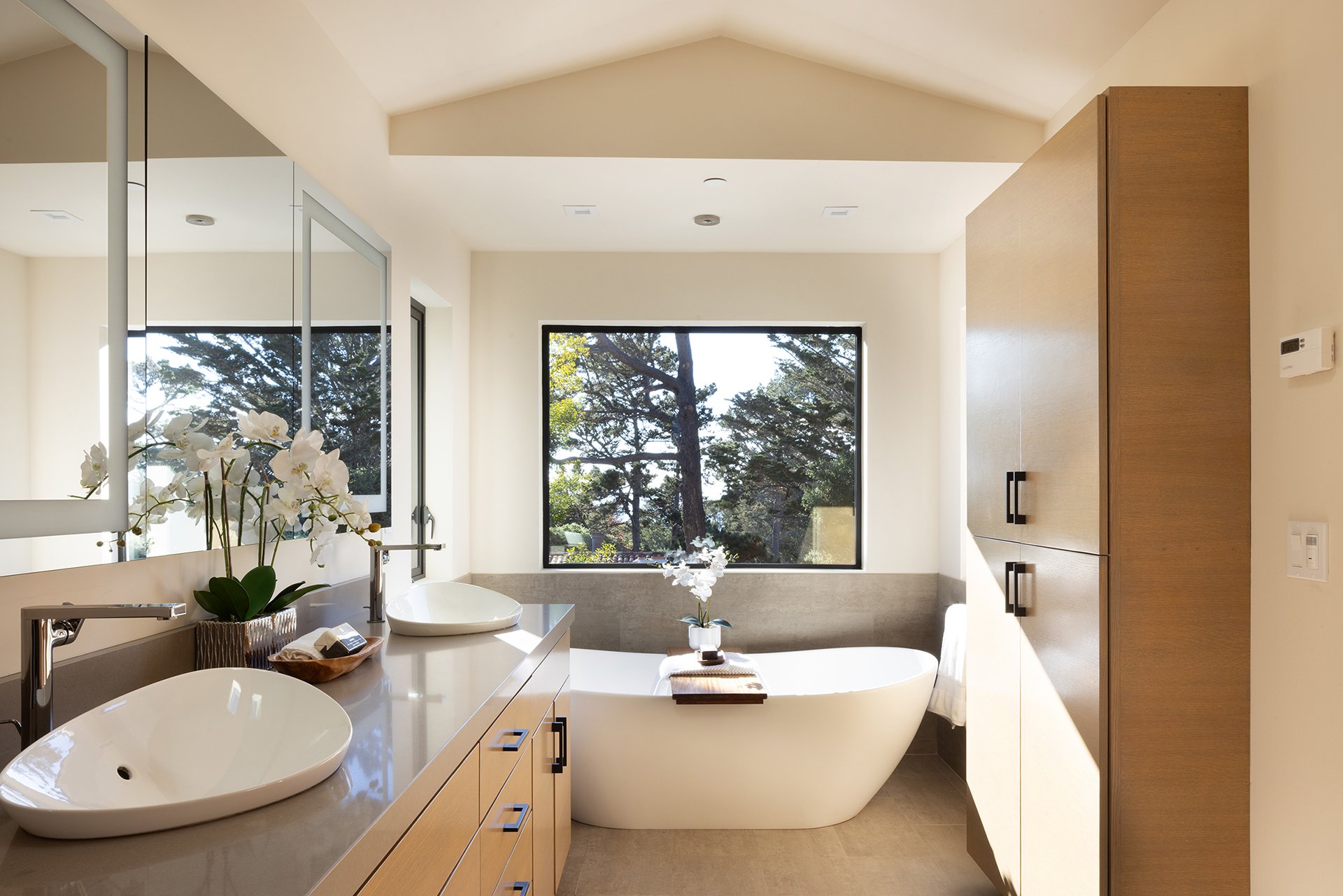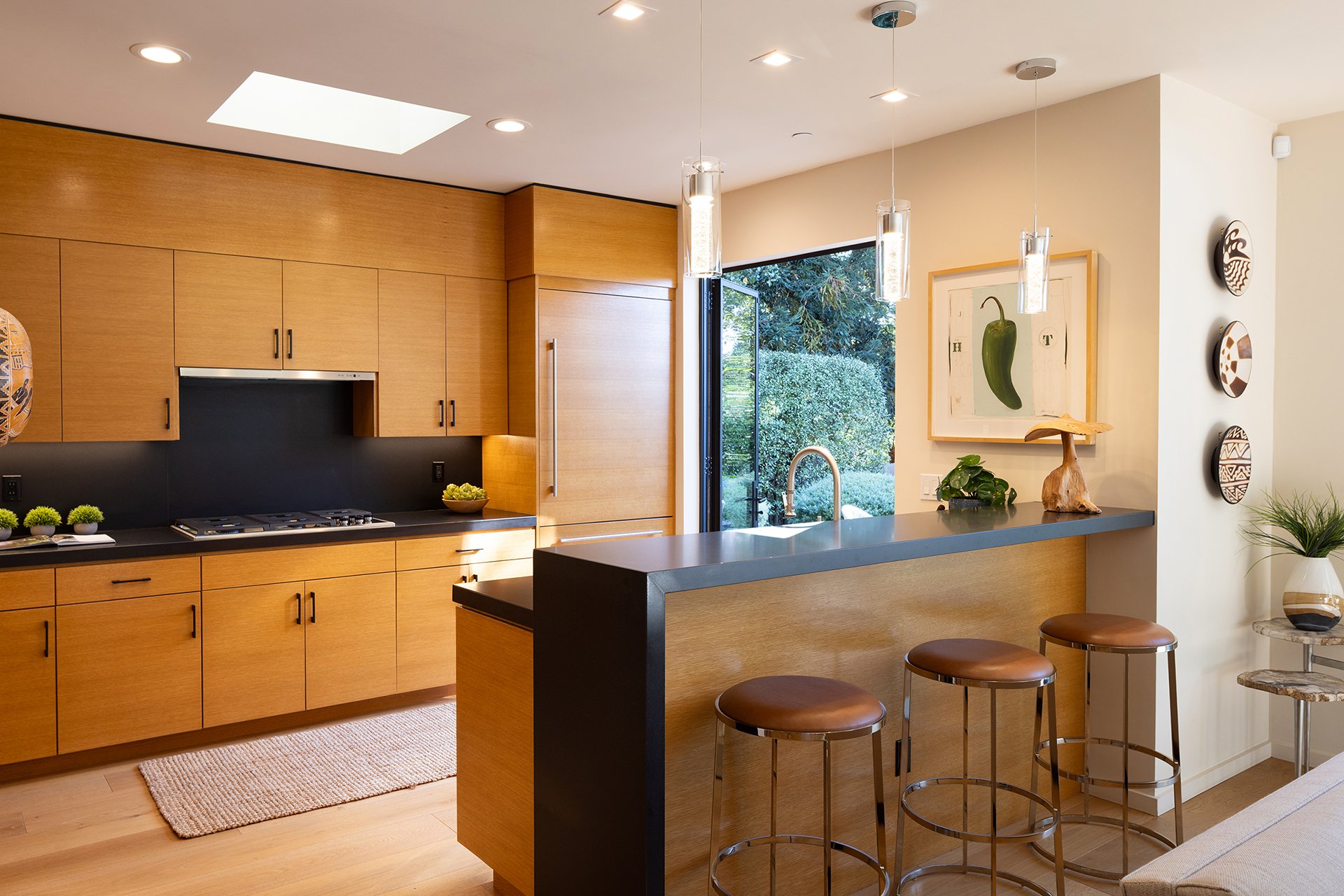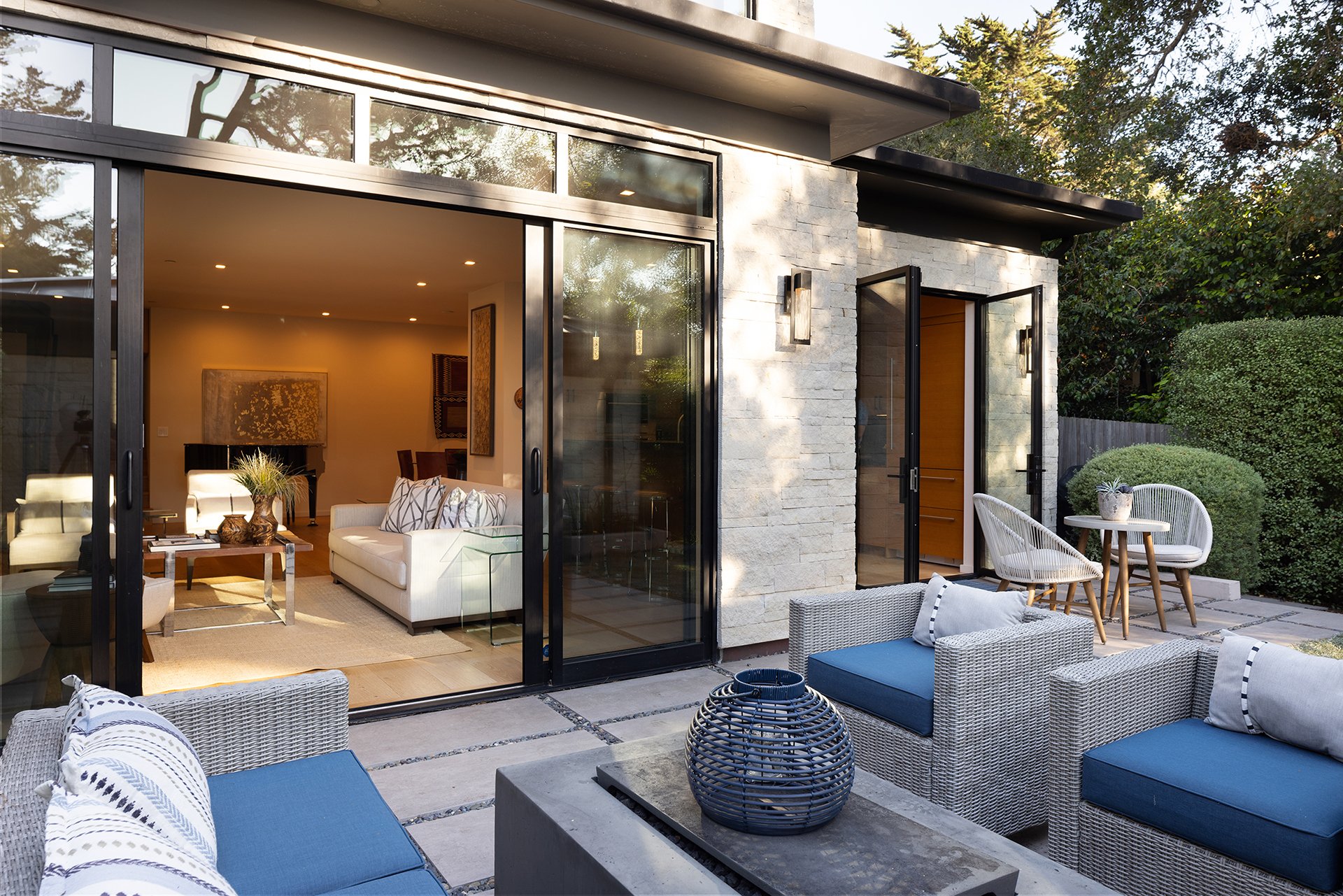 Designed by acclaimed architect Eric Miller, this luxury 3-bedroom, 3.5-bath residence offers approx. 2,000 sq ft of finely curated living on a rare 5,000 sq ft corner lot in Carmel’s Golden Rectangle—just two blocks to the beach and one block to Ocean Avenue. Completed in 2020, the home embodies sophisticated coastal living with clean contemporary lines and perfect proportions. Expansive windows and walls of glass flood the interiors with natural light, highlighting rich hardwood floors, stone accents, and bespoke finishes. The airy open-concept design features a chef’s kitchen, elegant dining, and a stylish living room anchored by one of two fireplaces. Upstairs, the serene primary suite enjoys filtered ocean views and glimpses of Pebble Beach, while two guest suites offer privacy and comfort. Radiant heat, metal roof, mini-split A/C, and detached garage provide modern convenience. Outdoor terraces extend the living experience, creating ideal spaces for entertaining or quiet retreat. With room to add an ADU and set in Carmel’s most sought-after location, this home is a rare opportunity to own a modern coastal sanctuary of exceptional quality and timeless design.